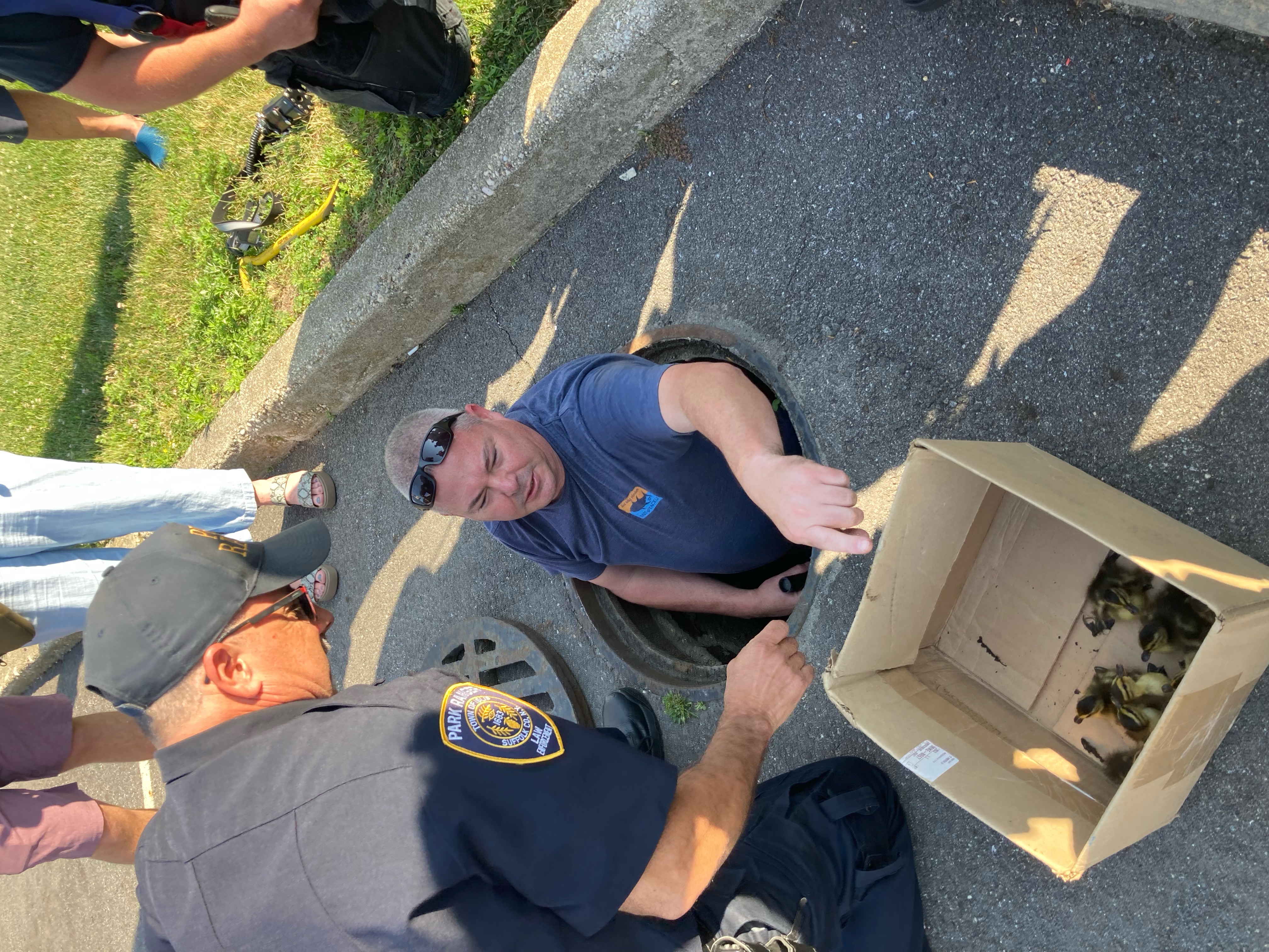 The fire department arrived, removed the drain cover and retrieved the 10 ducklings from the 5-foot-deep drain.