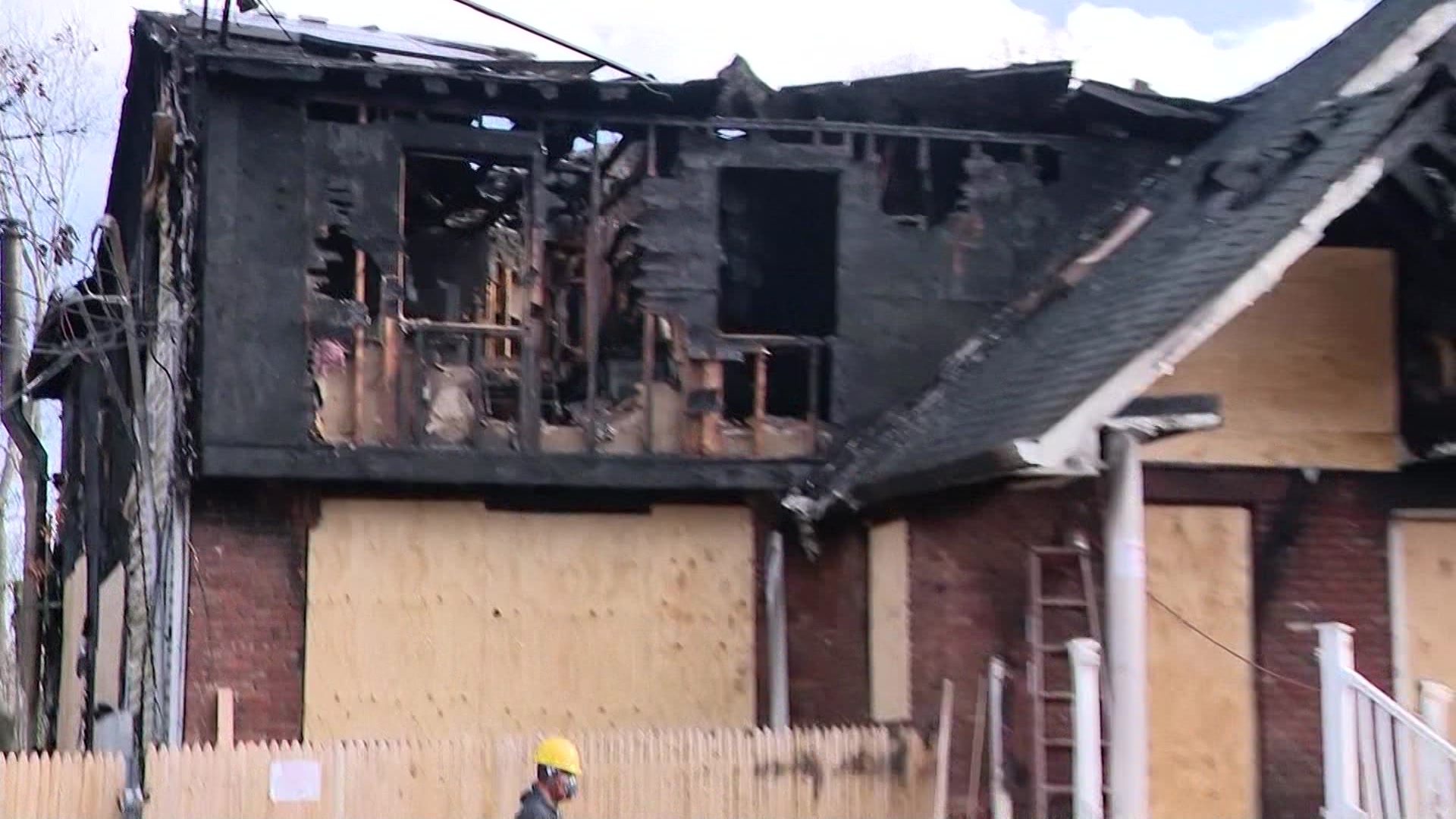 The fire left the home destroyed and boarded up.