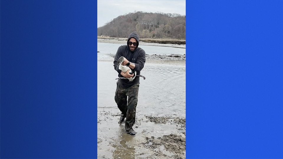 Loon stuck in fishing line in the Long Island Sound rescued