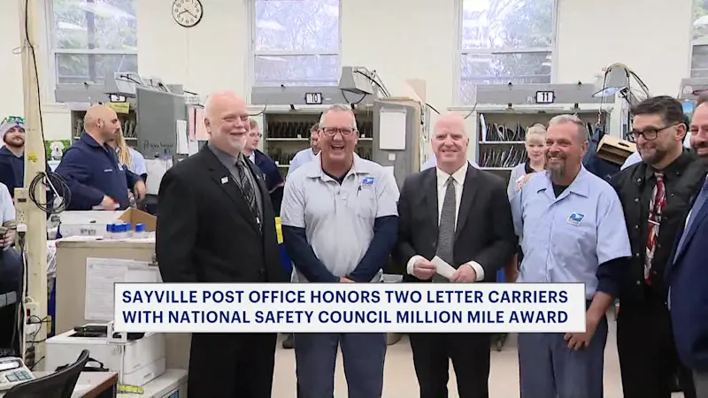 Two letter carriers honored with Million Mile Award at Sayville Post Office