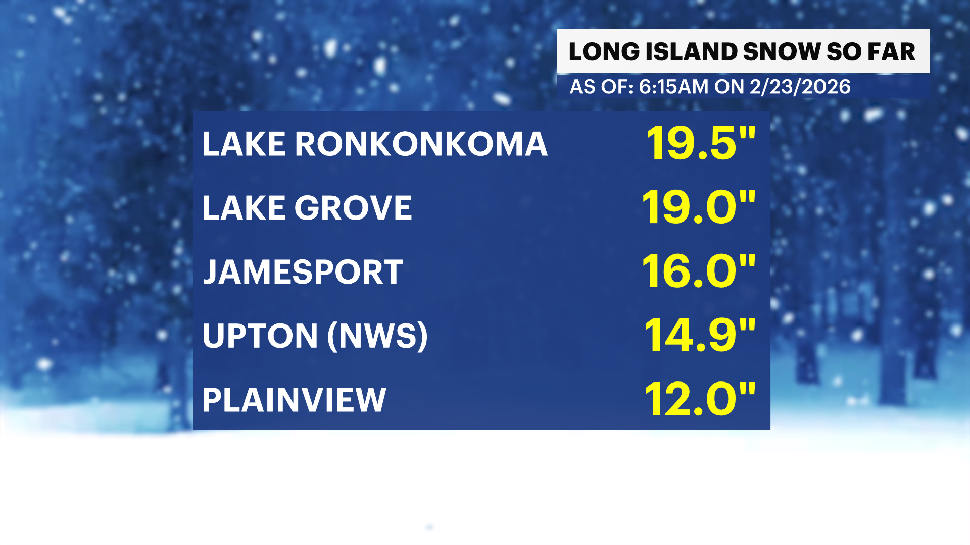 More than 2 feet of snow has fallen in Suffolk County. Islip reported it's biggest snowstorm on record. The previous record was 27.8", but as of this afternoon 28" of snow has fallen. This surpasses the blizzard of 1978 and Blizzard of 2013