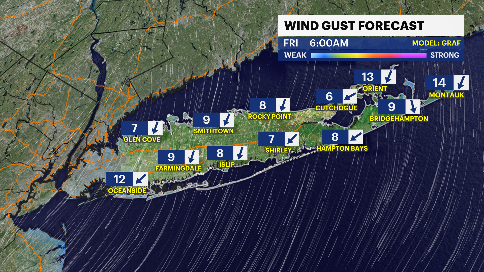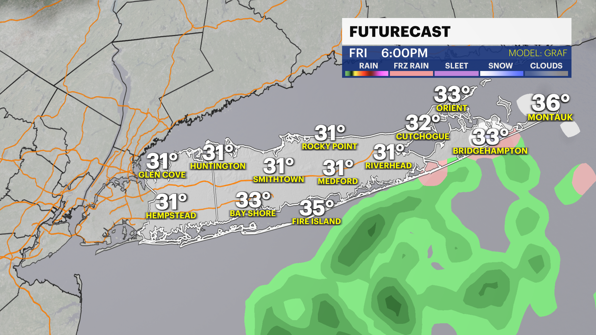 At any point after 9 a.m. Friday, there can be a few spotty light snow showers and flurries. While a slippery spot with a trace of snow cannot be ruled out, most of Long Island is not expected to see snow on the ground.