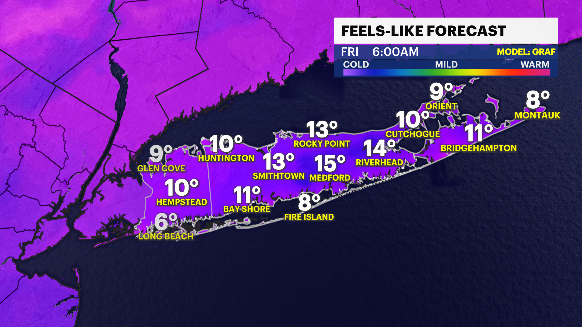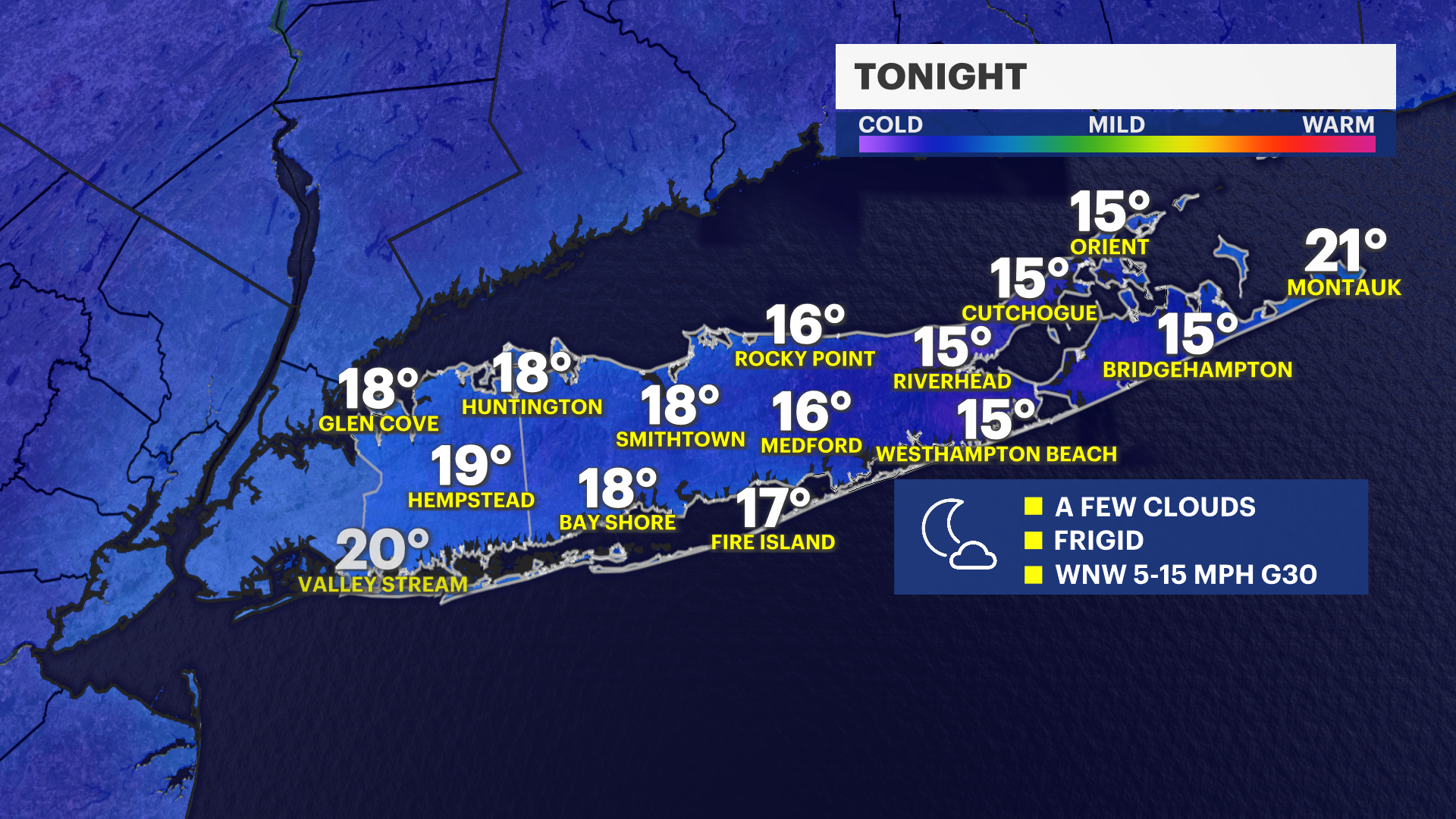 Temperatures are plummeting across Long Island and the wind is still gusting between 20 and 35 mph following the passage of a cold front this evening. This is leading to that type of cold that can just simply be painful when you step outside with wind chills in the single digits to mid-teens at best this evening and overnight.