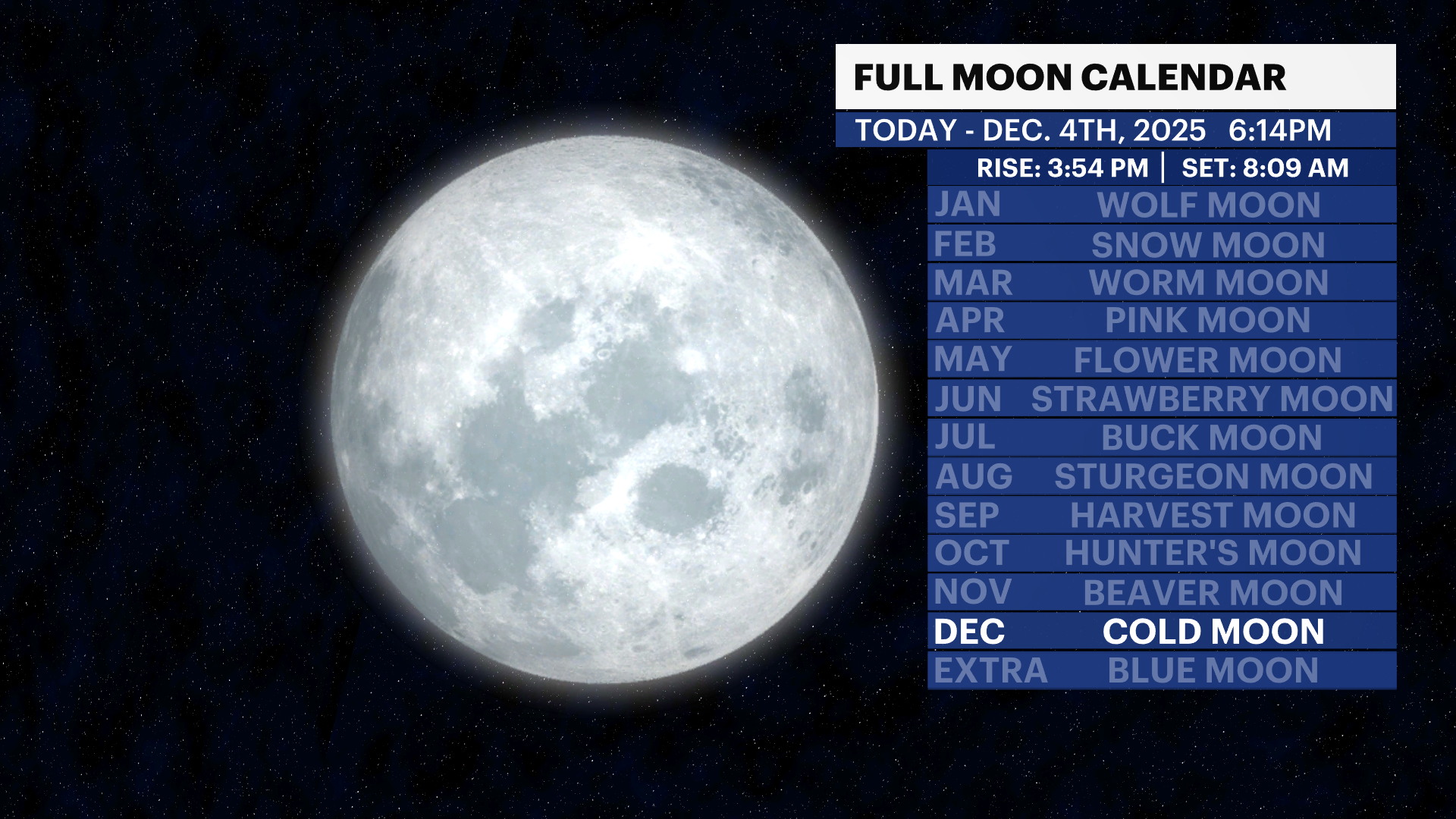 Tonight's full moon is the last of 2025 and also our next supermoon which means it appears slightly brighter and larger than a typical full moon.