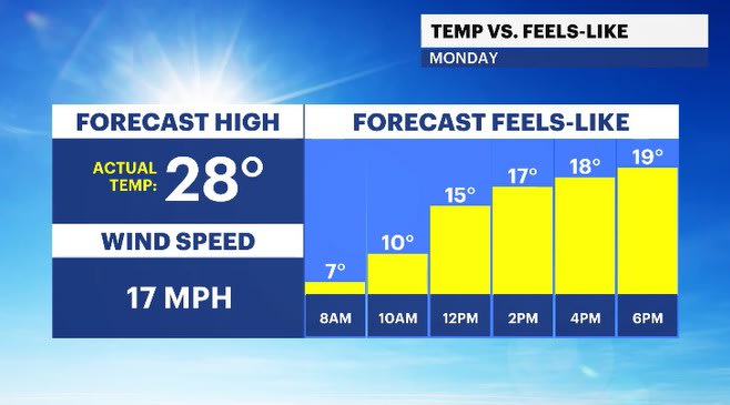 Temps will feel into the teens today but will feel warmer as the week goes on.