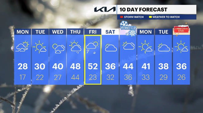 WEDNESDAY: CHRISTMAS EVE - Mostly sunny. Highs: mid-30s. Lows: mid-20s.