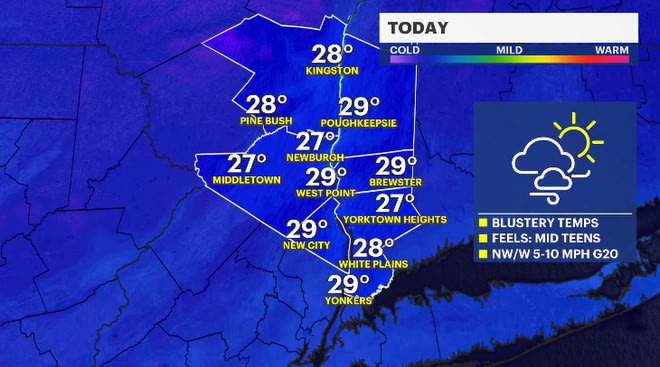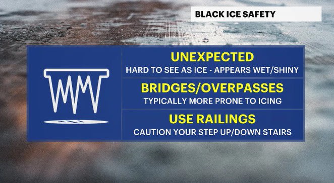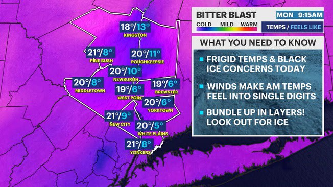 TODAY: BITTER BLAST - Mix of sun and clouds with cold, gusty winds through much of the day. Expect bitterly cold temps in the morning & patches of black ice. Highs: upper 20s. Lows: upper 10s.