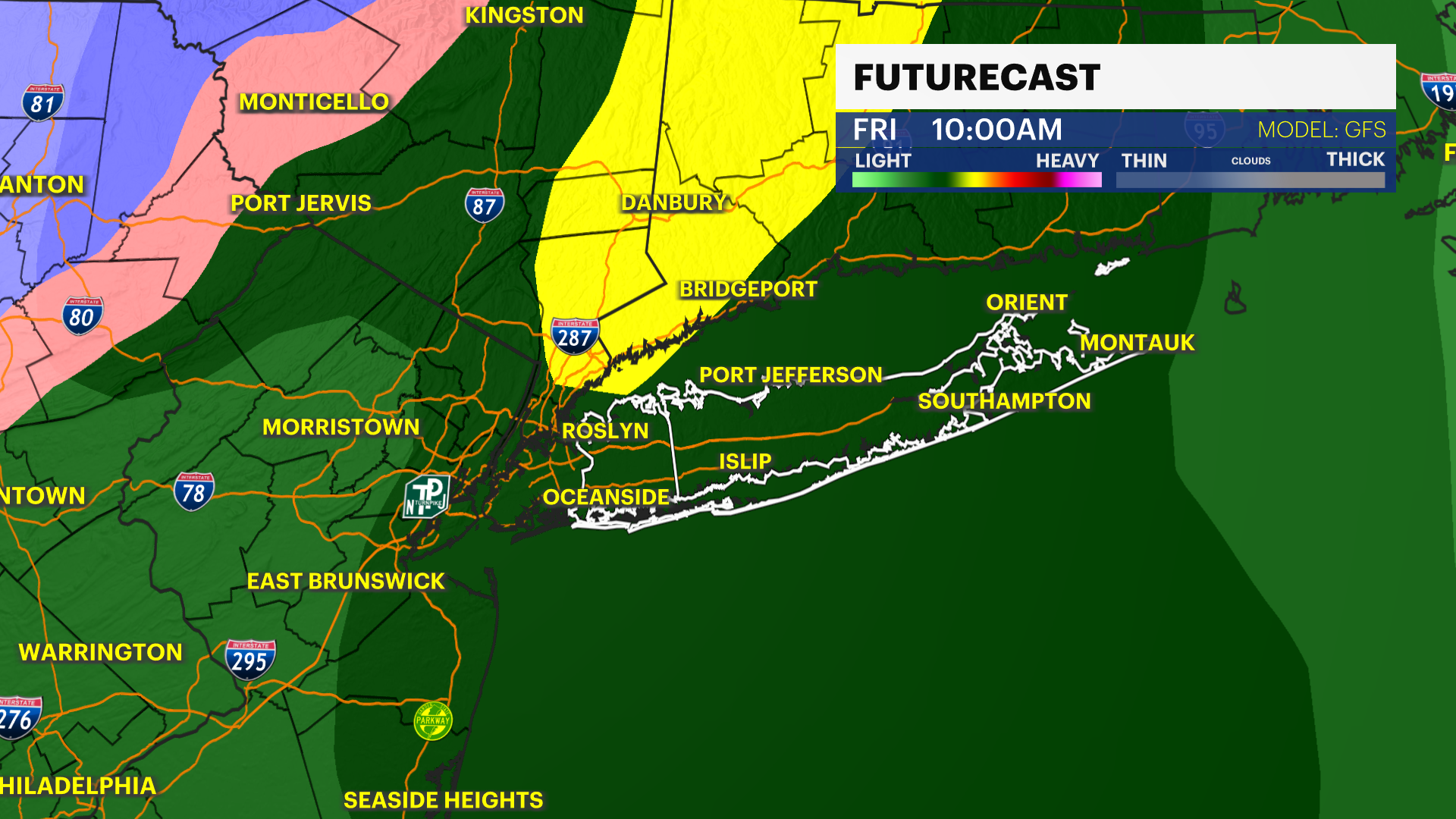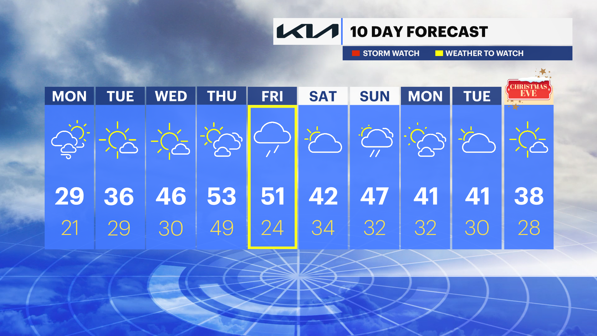 Friday: WEATHER TO WATCH. TRACKING A STORM. Cloudy with morning rain, gusty winds and warm weather. Highs 50 to 55.