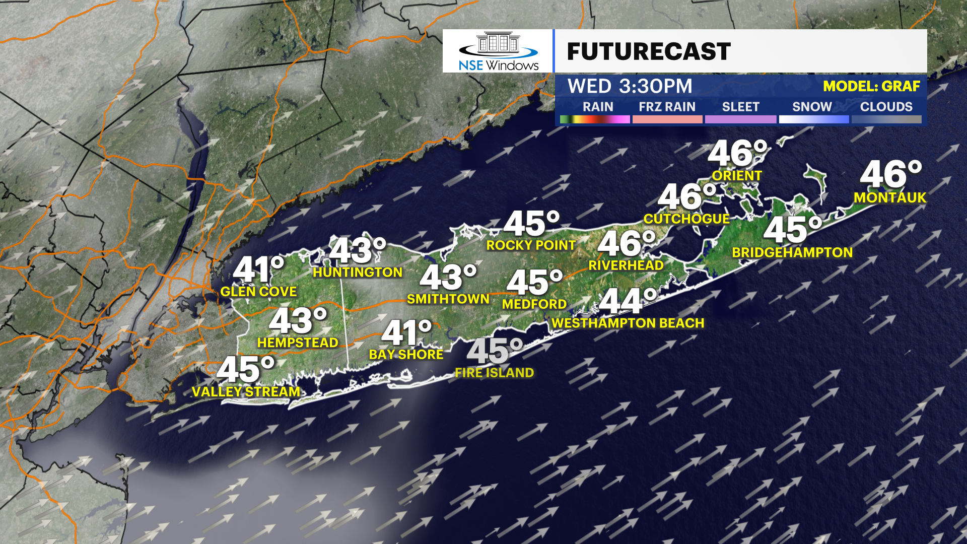 Wednesday: Mostly sunny with a high near 46. Southwest wind 11 to 16 mph.