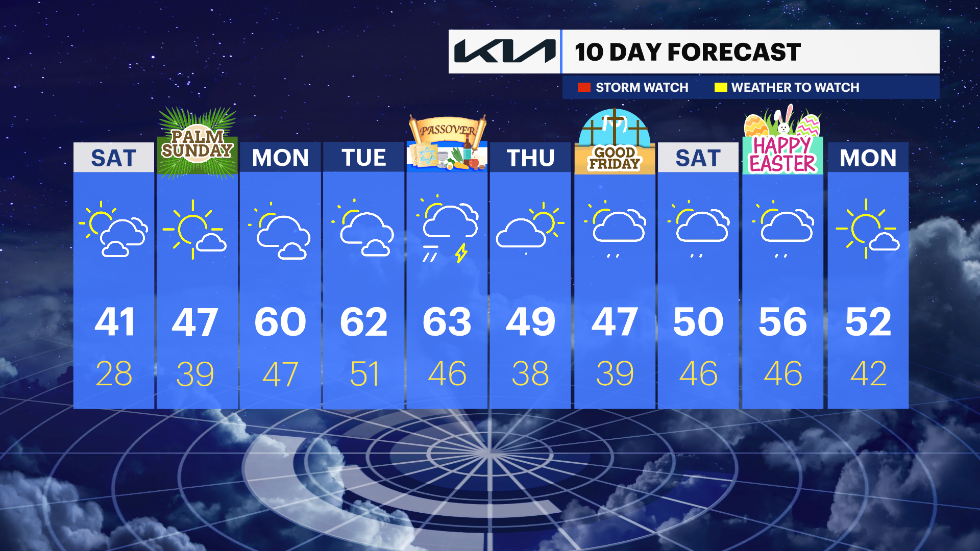 Next week: A warming trend sets in, with temperatures possibly reaching the 60s and even 70s by Tuesday and Wednesday, though coastal areas may stay a bit cooler. There’s a chance for occasional showers or thunderstorms on Wednesday. More showers are possible later in the week with a return to chilly temperatures by Friday.