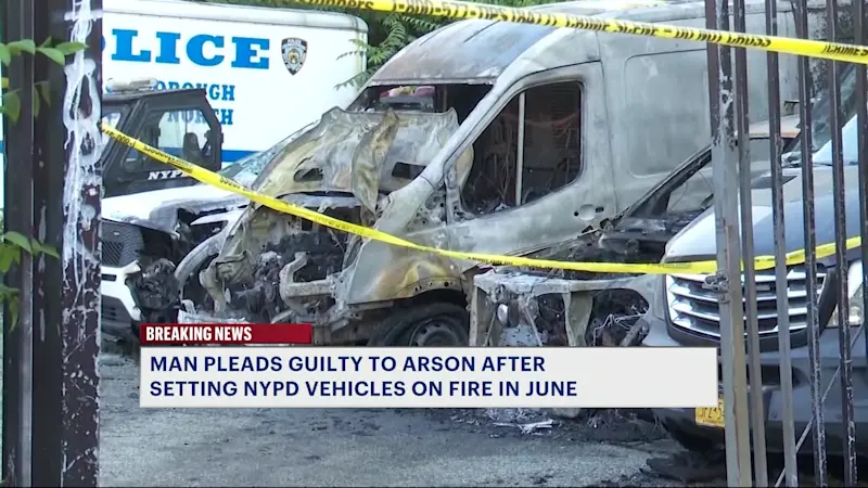 Story image: Man pleads guilty to setting fire to multiple NYPD vehicles last year