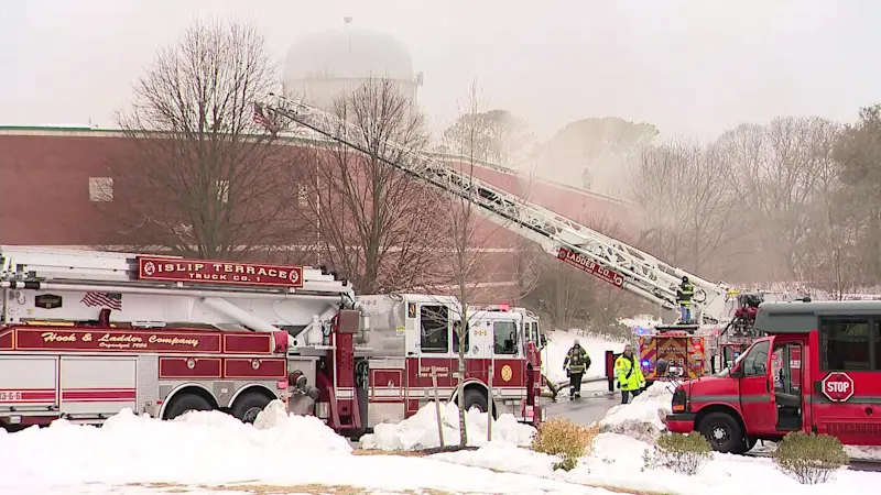 Crews battle fire at Central Islip warehouse