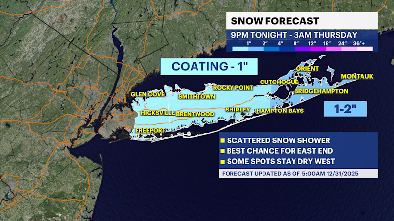 Few snow showers could create slippery conditions for New Year’s Eve on LI
