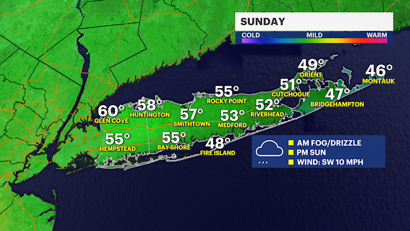 Fog, drizzle and showers to start Sunday on Long Island; brighter days ahead