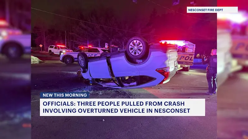 3 people rescued after two‑car crash overturns vehicle in Nesconset