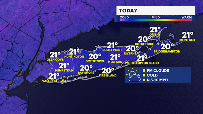 Frostbite concerns linger as bitter cold grips LI; East End snow chance Sunday