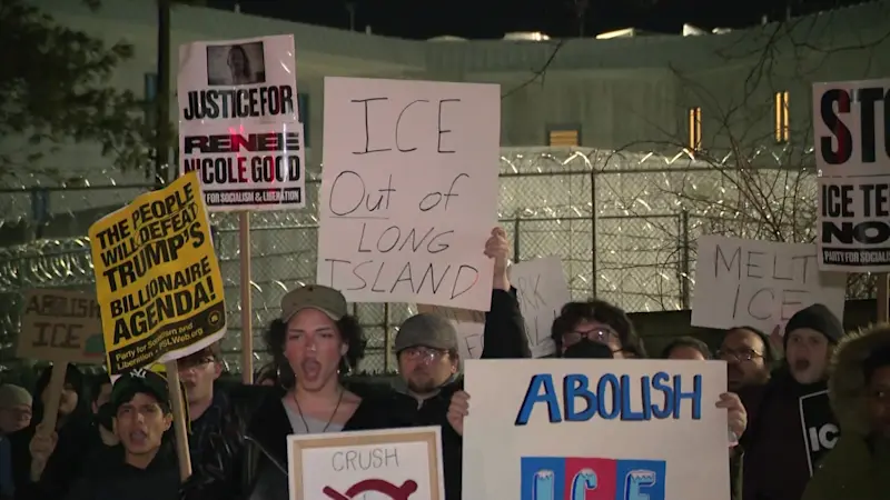 Hundreds rally outside Nassau jail in response to Minneapolis ICE-shooting; wife of detained Great Neck man speaks out