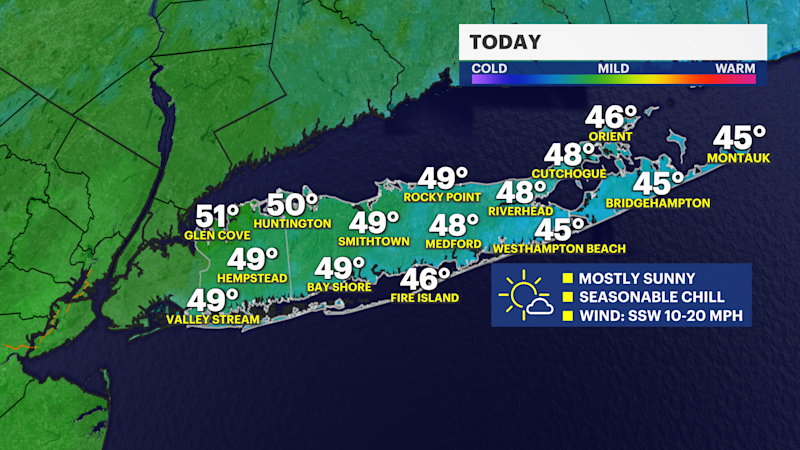 Less chilly this afternoon across Long Island, warm weather by mid-week