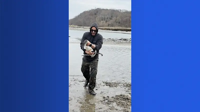 Loon stuck in fishing line in the Long Island Sound rescued