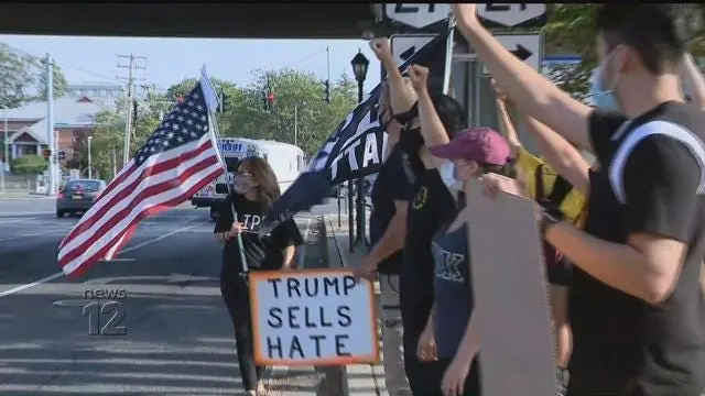 People in Merrick protested Wednesday demanding justice for Jacob Blake, a Black man who was shot by police in Kenosha, Wisconsin.