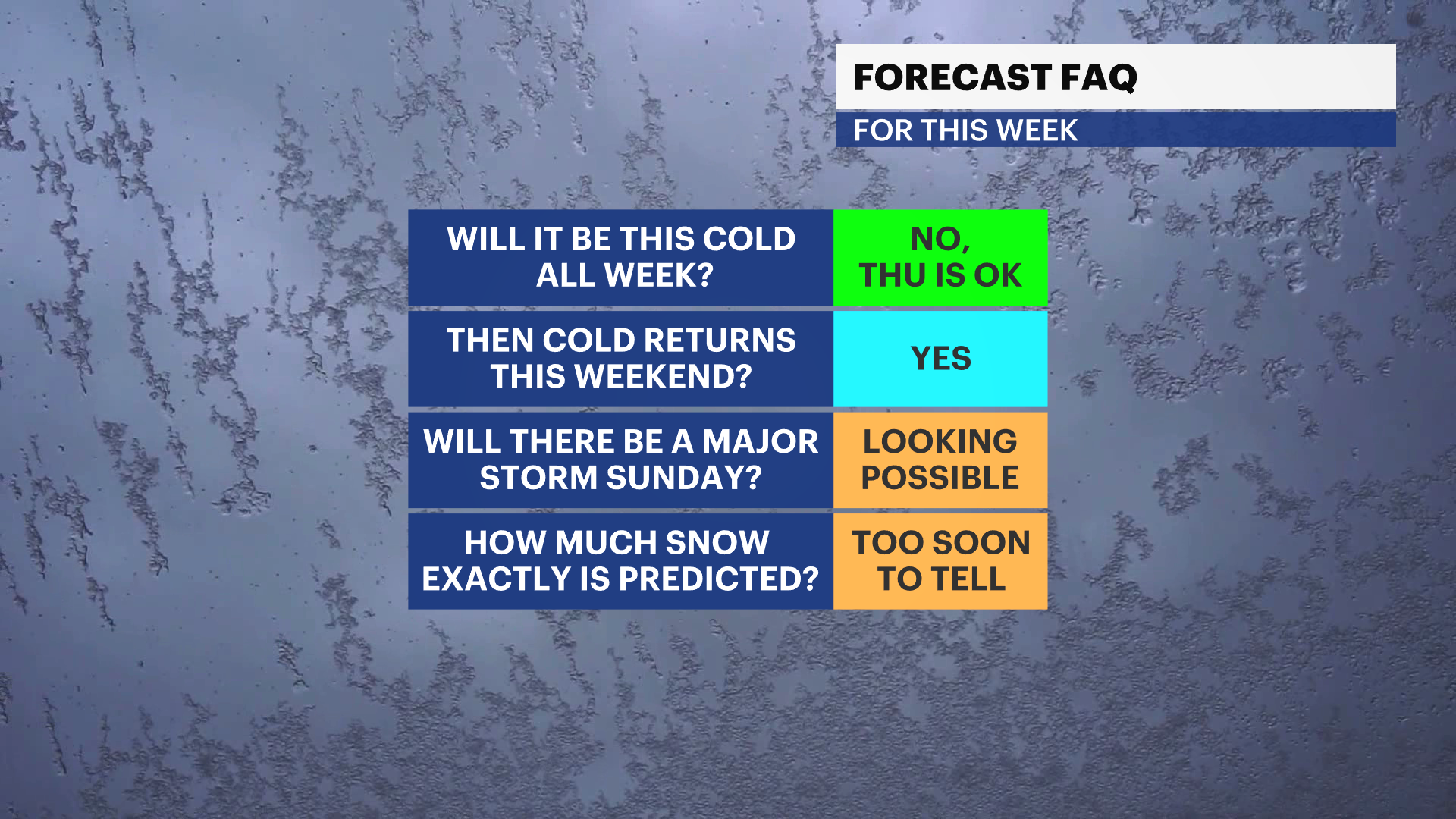 A brief mild surge is expected for Thursday as temperatures push back to the lower to mid-40s. Cold returns for Friday ahead of the weekend where a storm could possibly impact New Jersey.