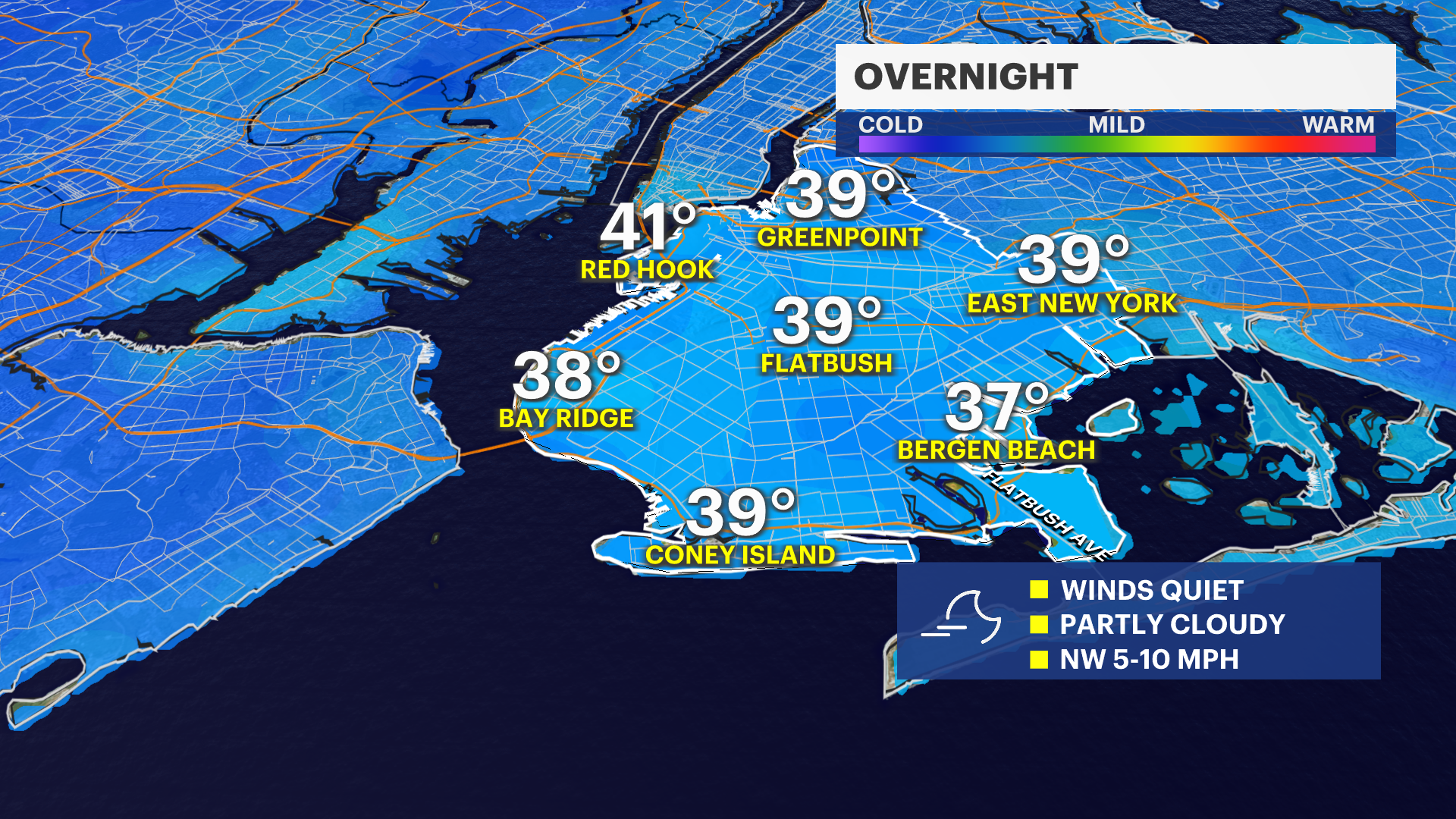 OVERNIGHT: Lows in the 30s and 40s. Partly cloudy. Less wind.