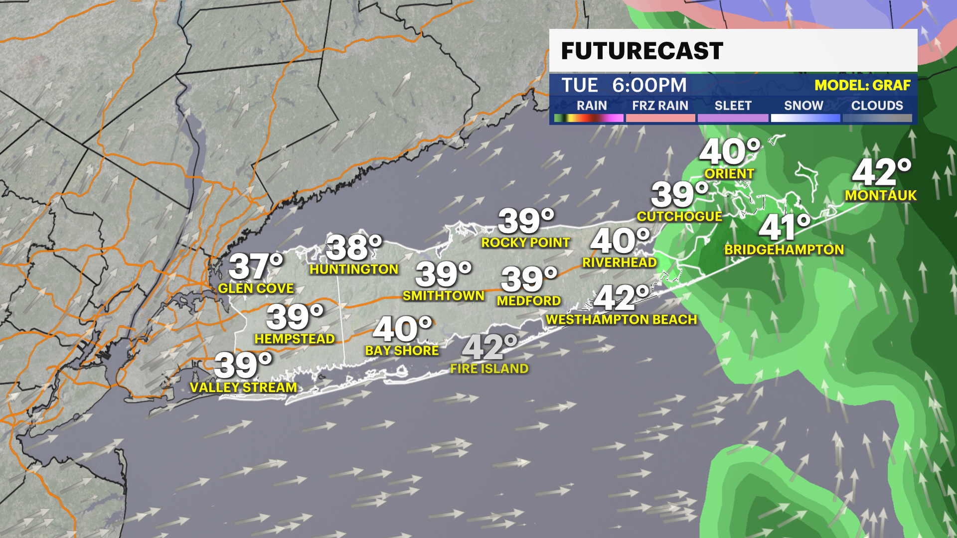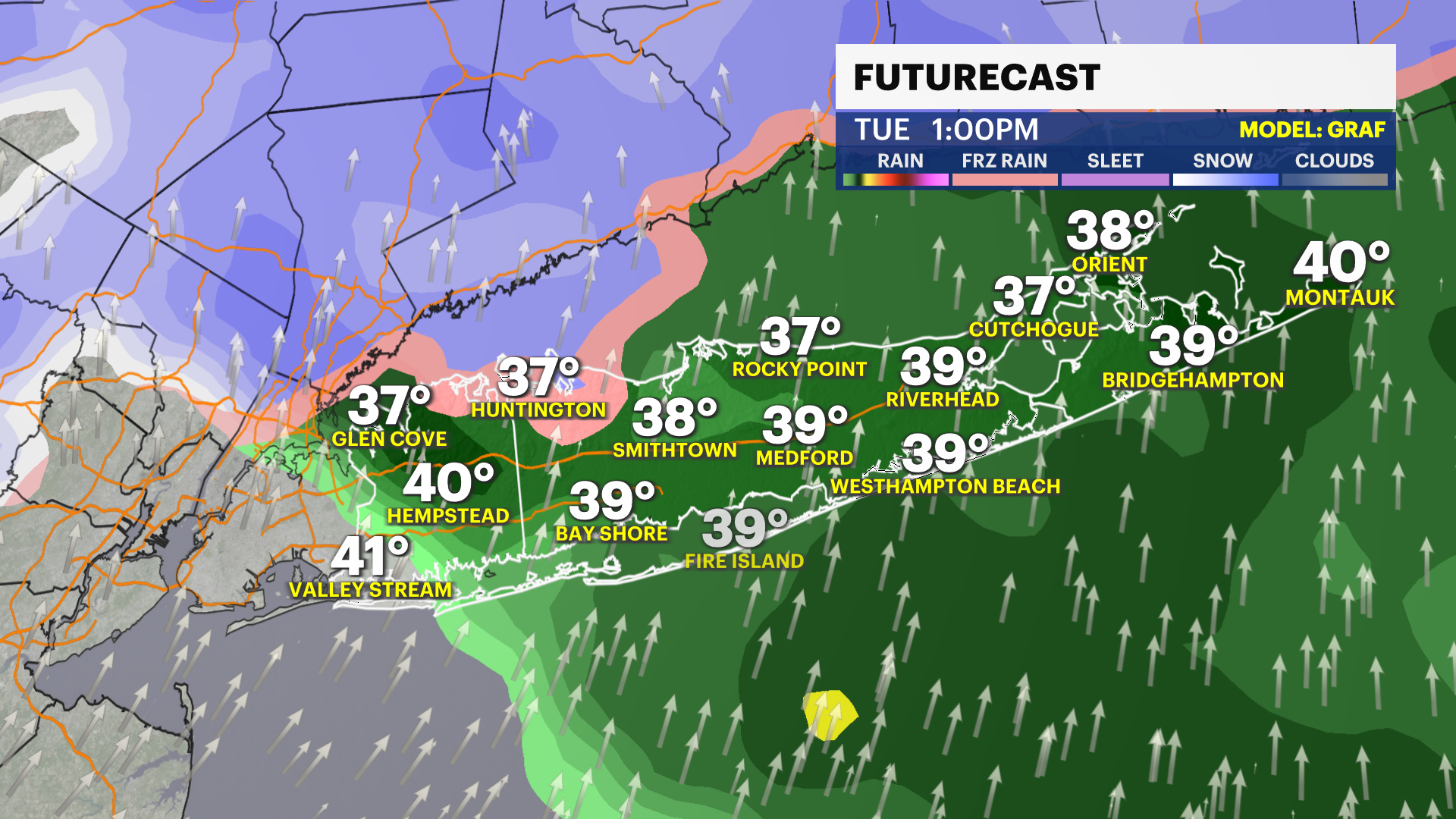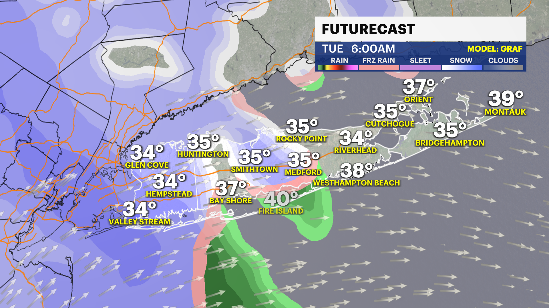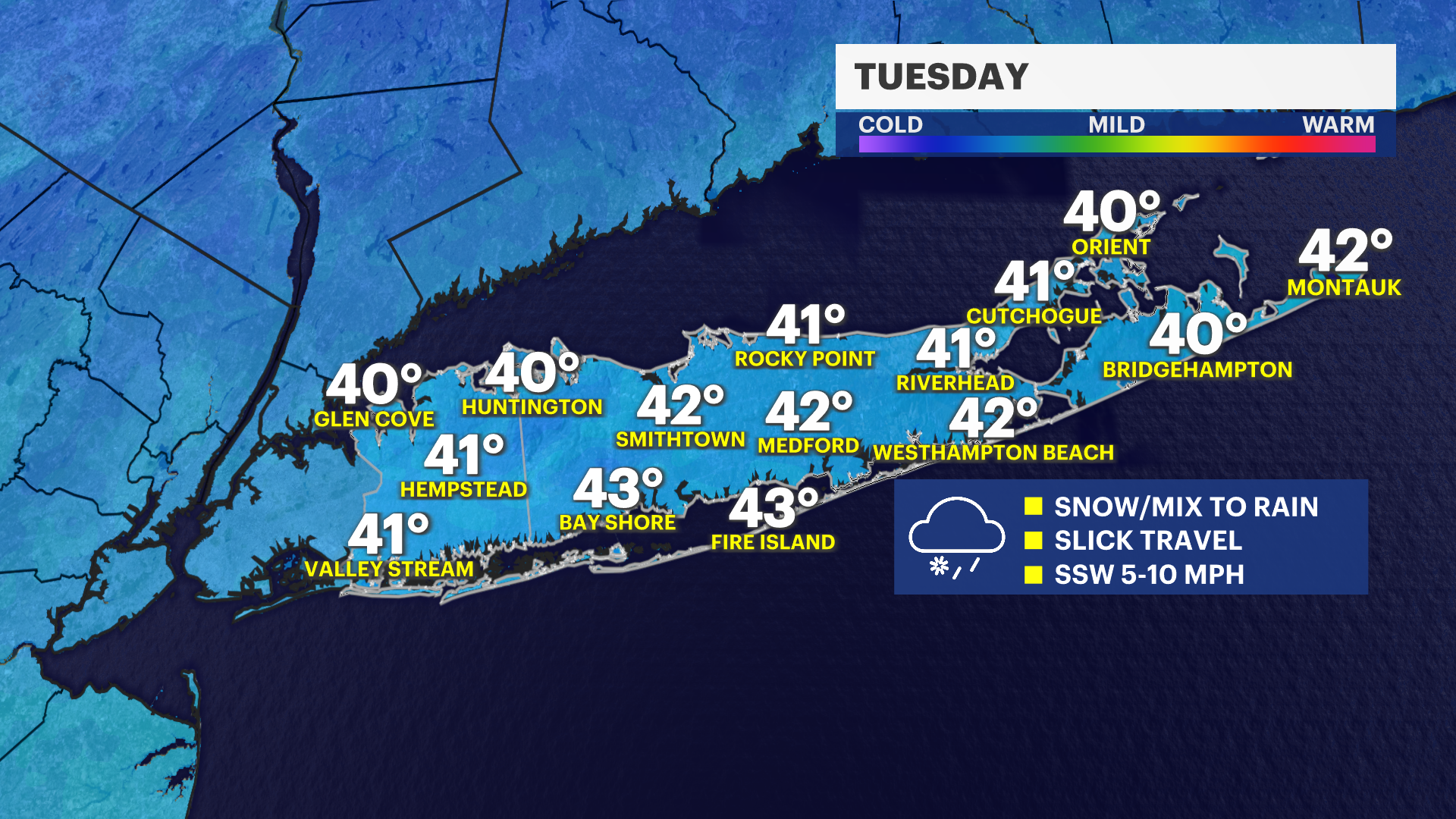After 10 a.m. Tuesday, most of Long Island will be experiencing rain. There can still be a few wet snowflakes mixing in, especially on the North Shore, but temperatures will be in the upper 30s at this point. Any snow accumulation will start to wash away, but travel will remain slippery and slushy.