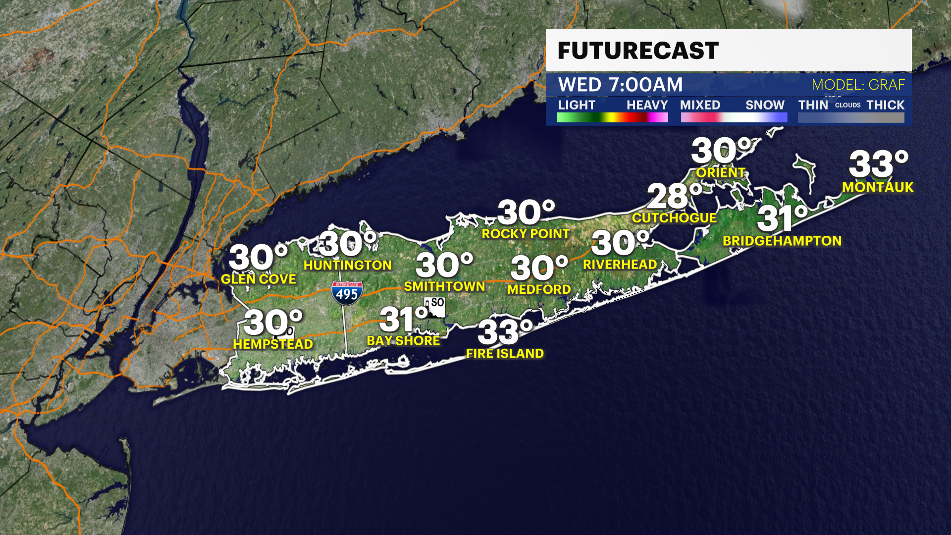 WEDNESDAY: Mostly Sunny. Highs near 43.