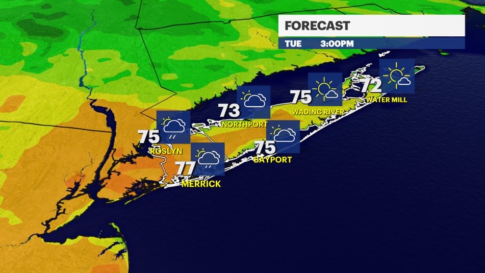 WHAT'S NEW: An Air Quality Alert is in effect for Long Island starting at midnight tonight through midnight tomorrow. Haze from wildfire smoke in Canada is back. There is also a Coastal Flood Advisory in effect for Nassau County this evening at high tide with tides about one foot above normal.