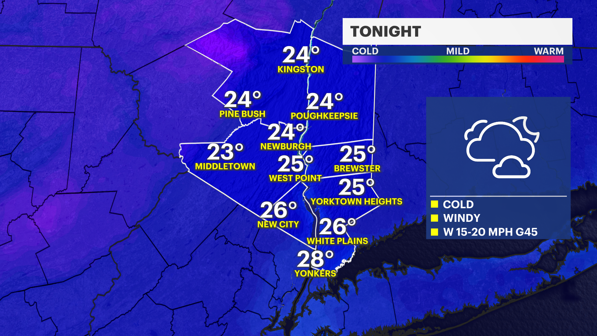 OVERNIGHT: Clearing, windy and cold. Watch for patchy ice. Temperatures will feel as if they are in the teens. Low of 28.