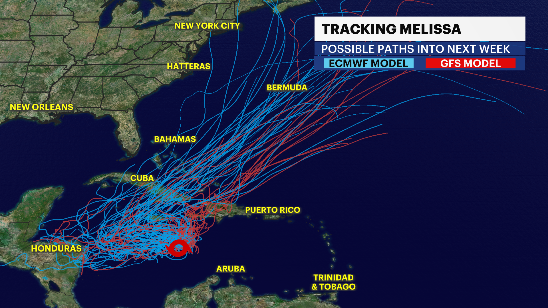 TRACKING THE TROPICS: Tropical Storm Melissa is bringing heavy rainfall, the risk of significant life-threatening flash flooding, the danger of numerous landslides, destructive winds and massive waves to portions of Haiti, Jamaica, Cuba and Dominican Republic through early next week. This storm will meander in the Caribbean through early next week and intensify to a major category four hurricane. There's still a lot of uncertainty with the exact track of where this tropical system goes by the end of next week.