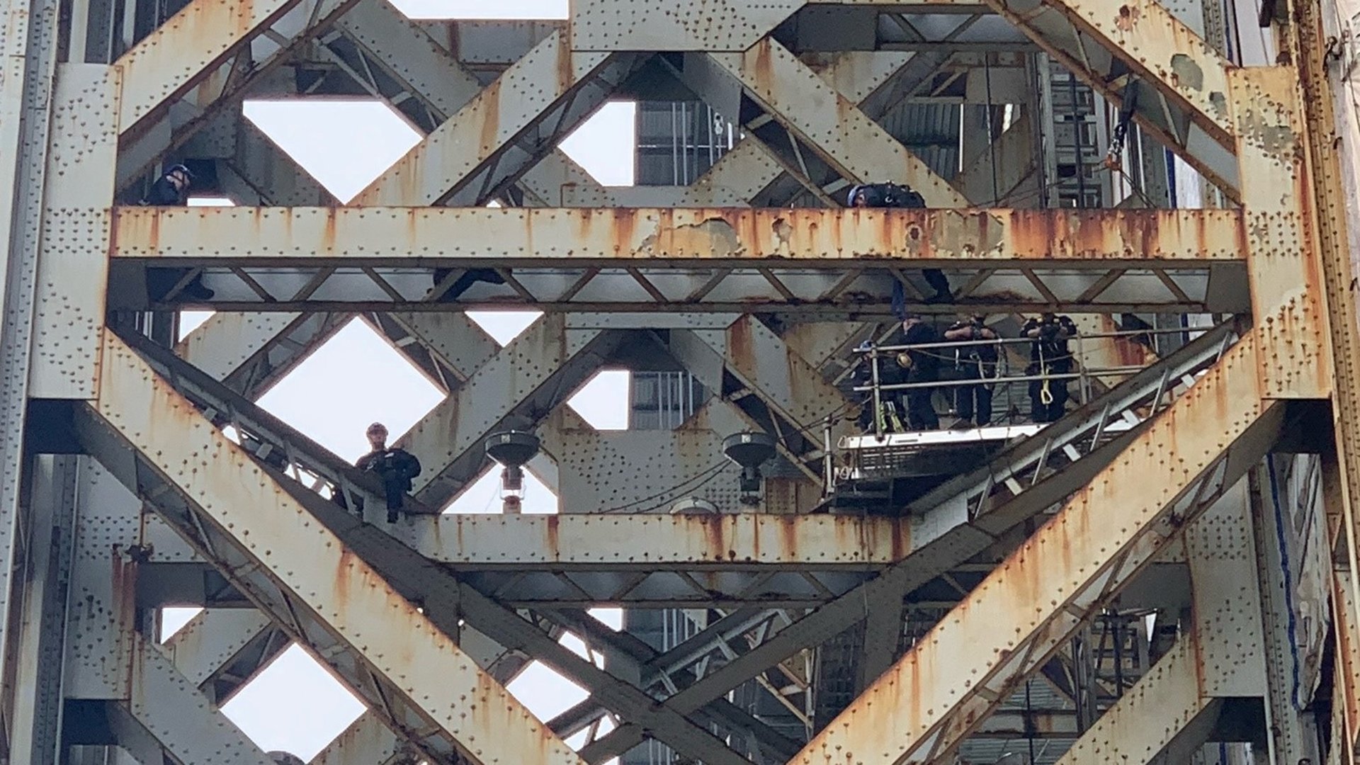Initial reports said that three climbers were scaling the bridge, but no other information was made available.
