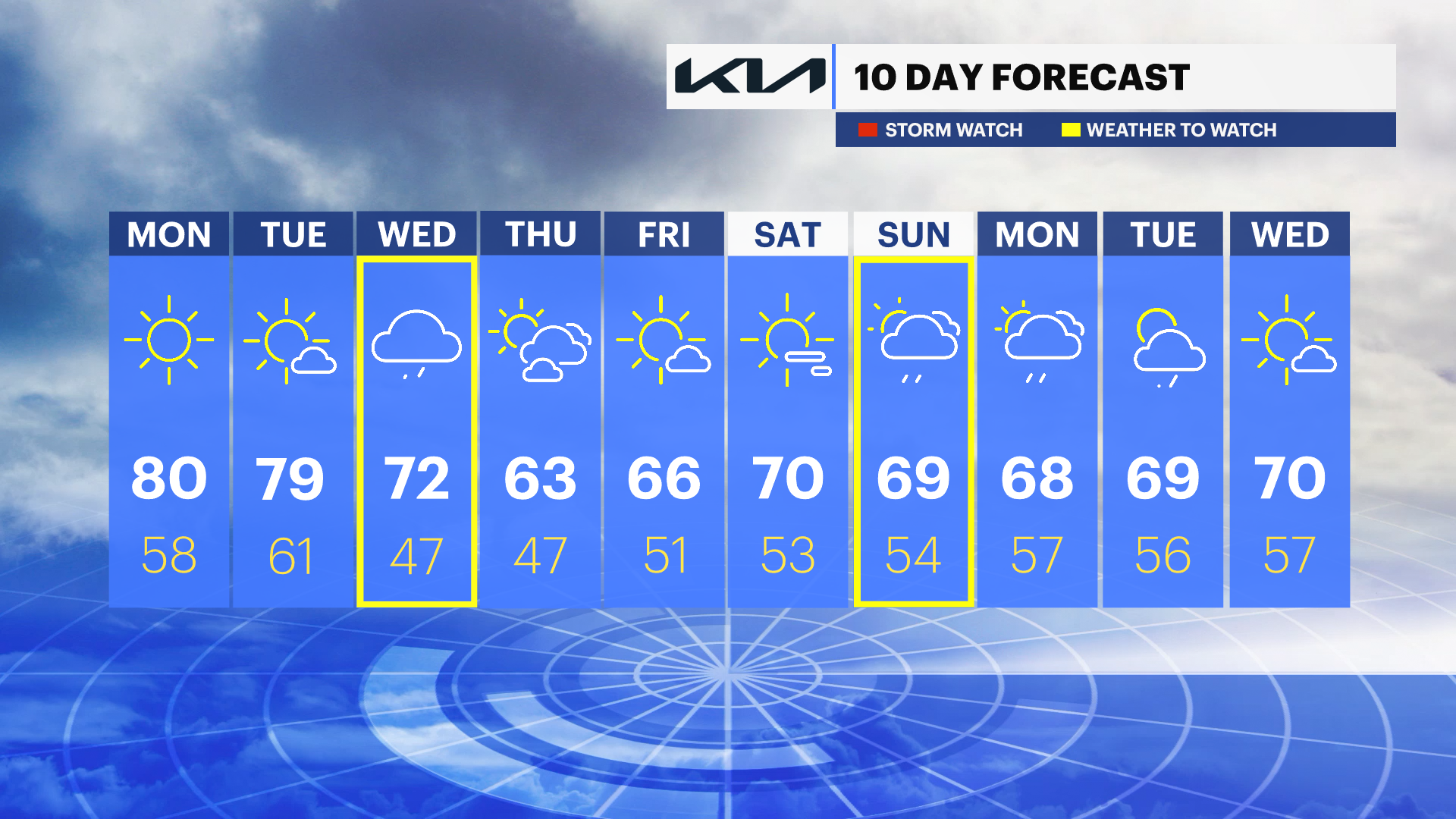 Wednesday: Cloudy with morning rain. Showers taper off west to east in the afternoon. High near 72. Southwest wind 5 to 15 mph becoming north in the afternoon. Turning cooler in the afternoon.