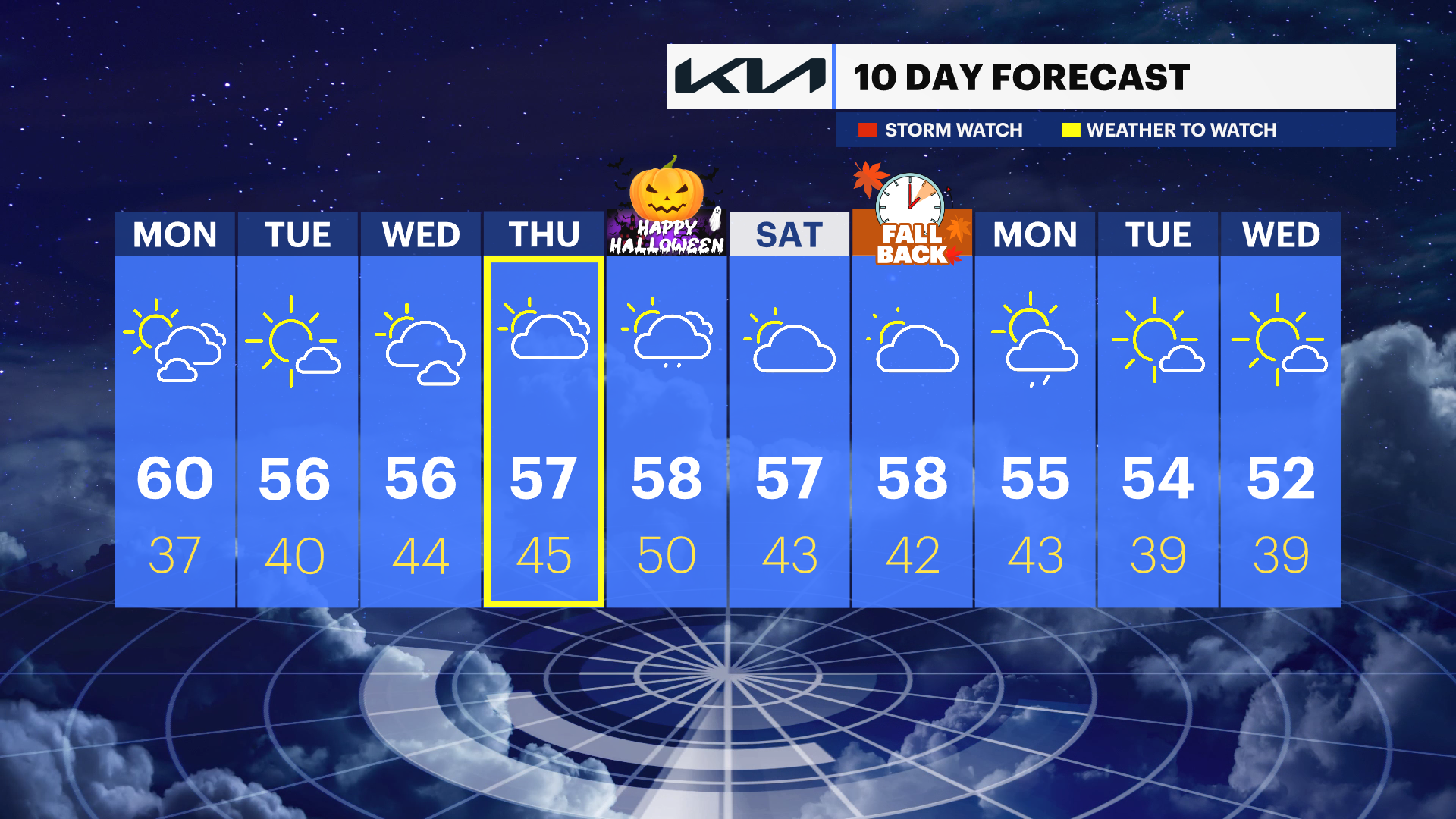 TONIGHT: Partly cloudy with patchy fog. Lows in the upper 40s.