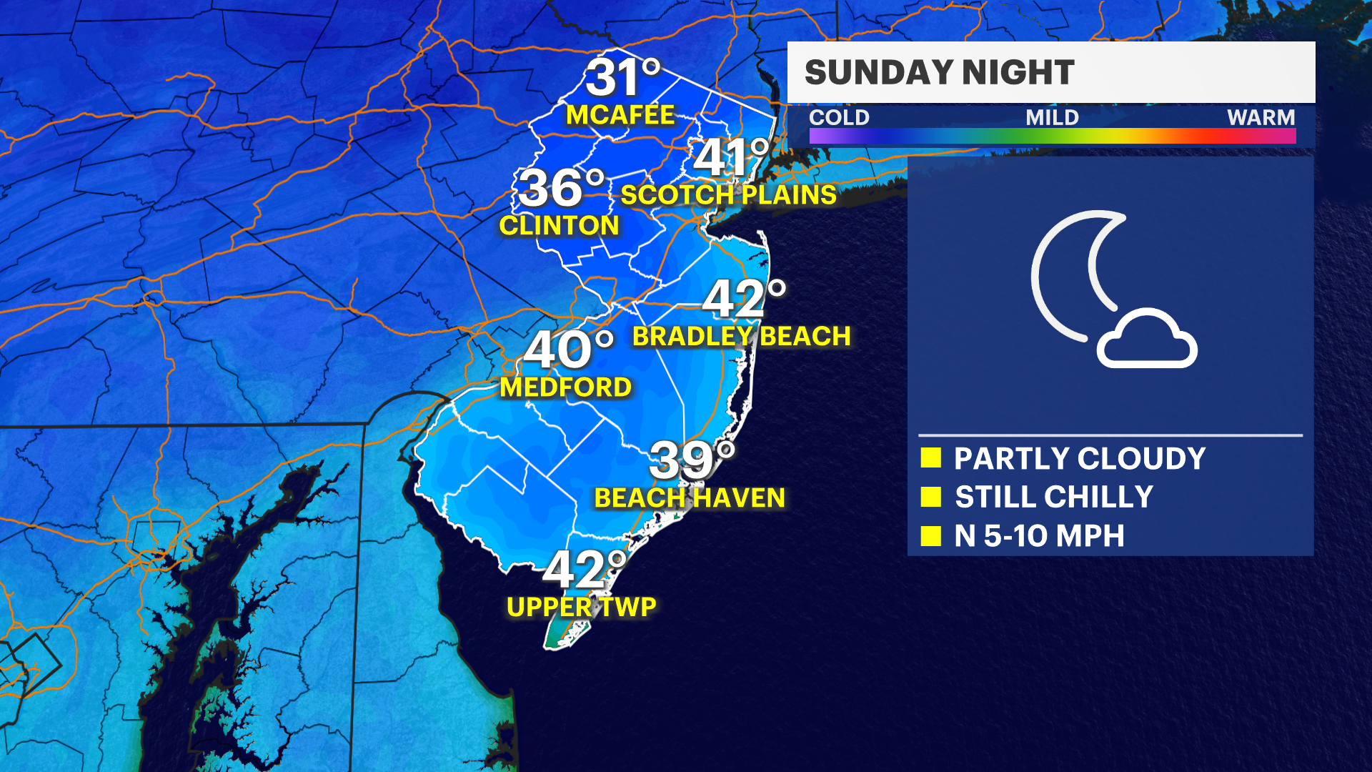 SUNDAY: Similar to Saturday. Highs in the upper 50s. Mix of sun and clouds.