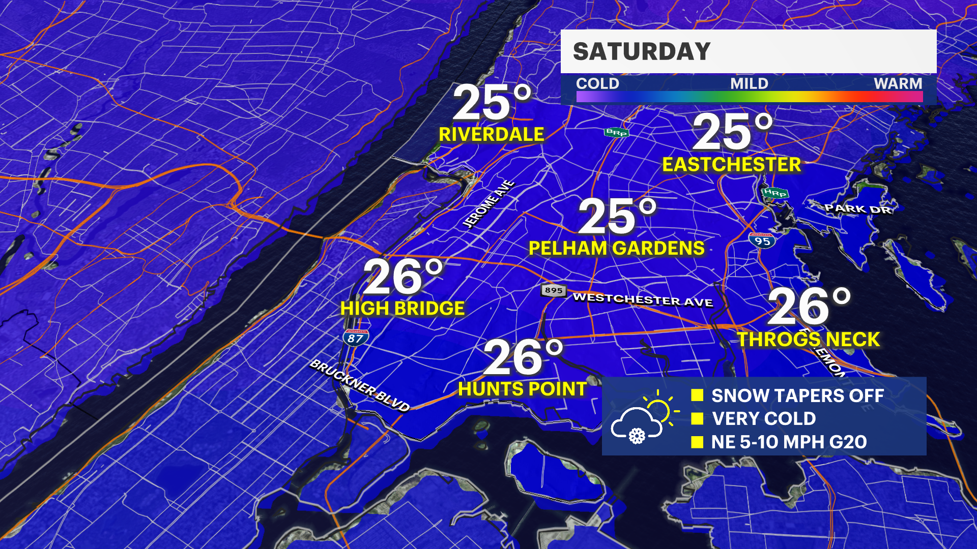 SATURDAY: Mostly sunny. Highs: mid-30s. Lows: mid-20s.
