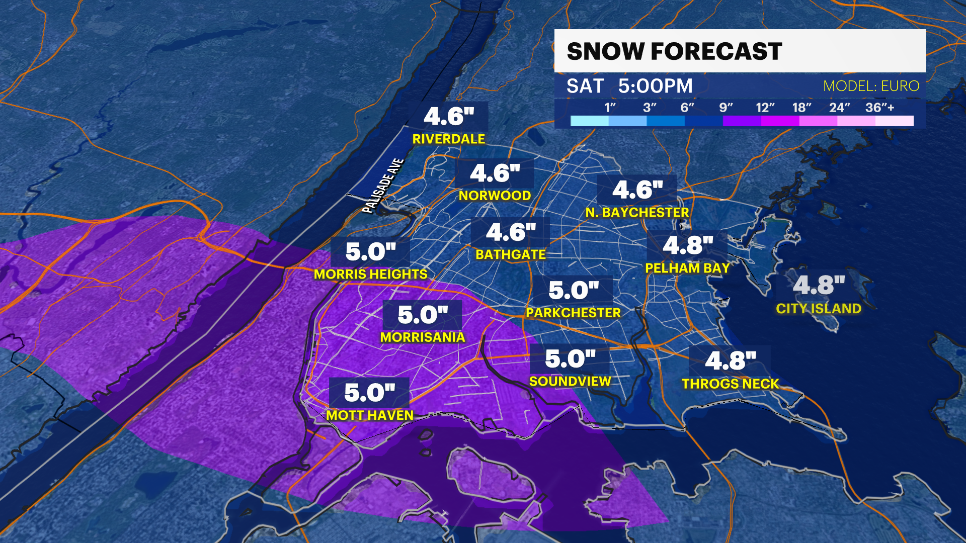 - Snow could transition into sleet as warmer air tries to move in. This will reduce the final snow totals.