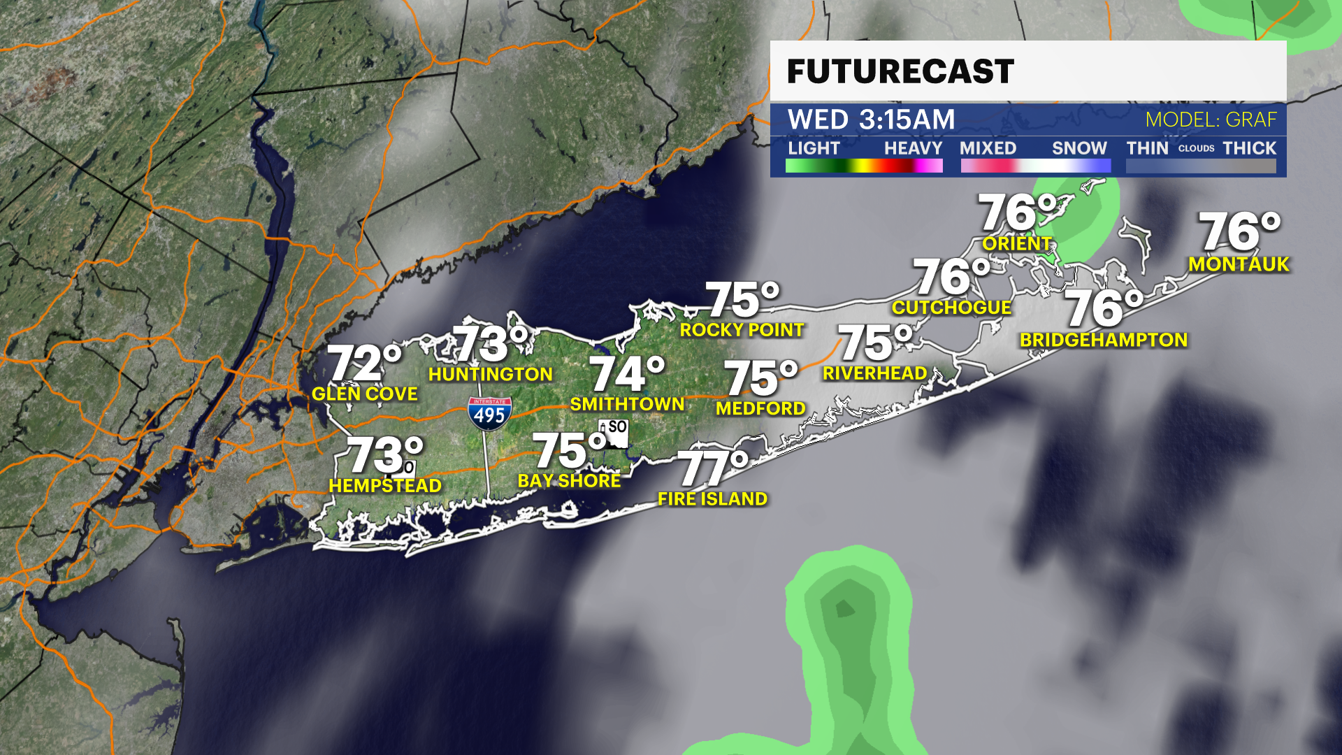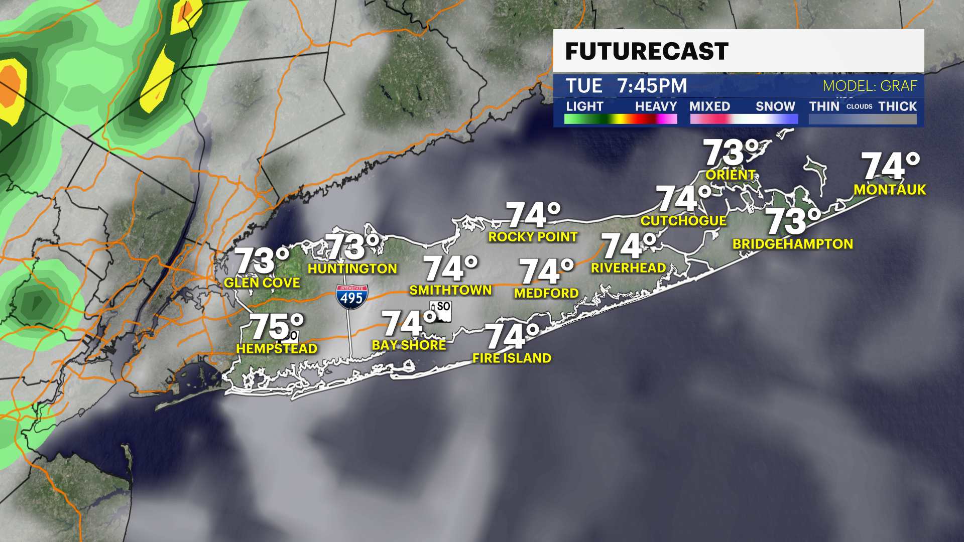 TUESDAY: Very warm and humid. Morning and evening clouds with sunshine in between. Slight chance for a passing shower or storm at night and again in the pre-dawn hours of Wednesday. Highs near 82°. Lows near 70°.