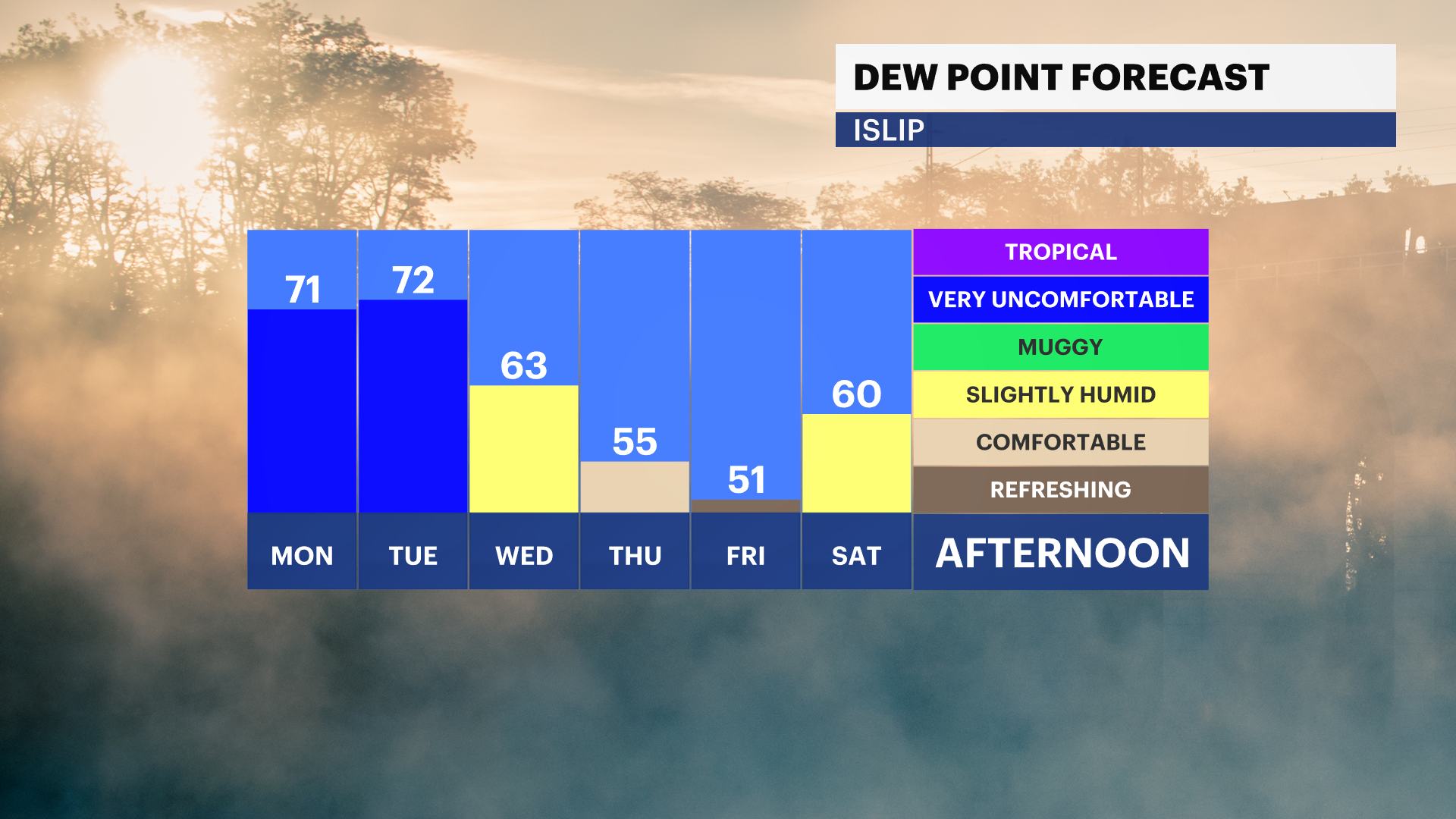 MON NIGHT: Partly cloudy with patchy fog overnight. South winds 5-10 mph. Lows near 71°.