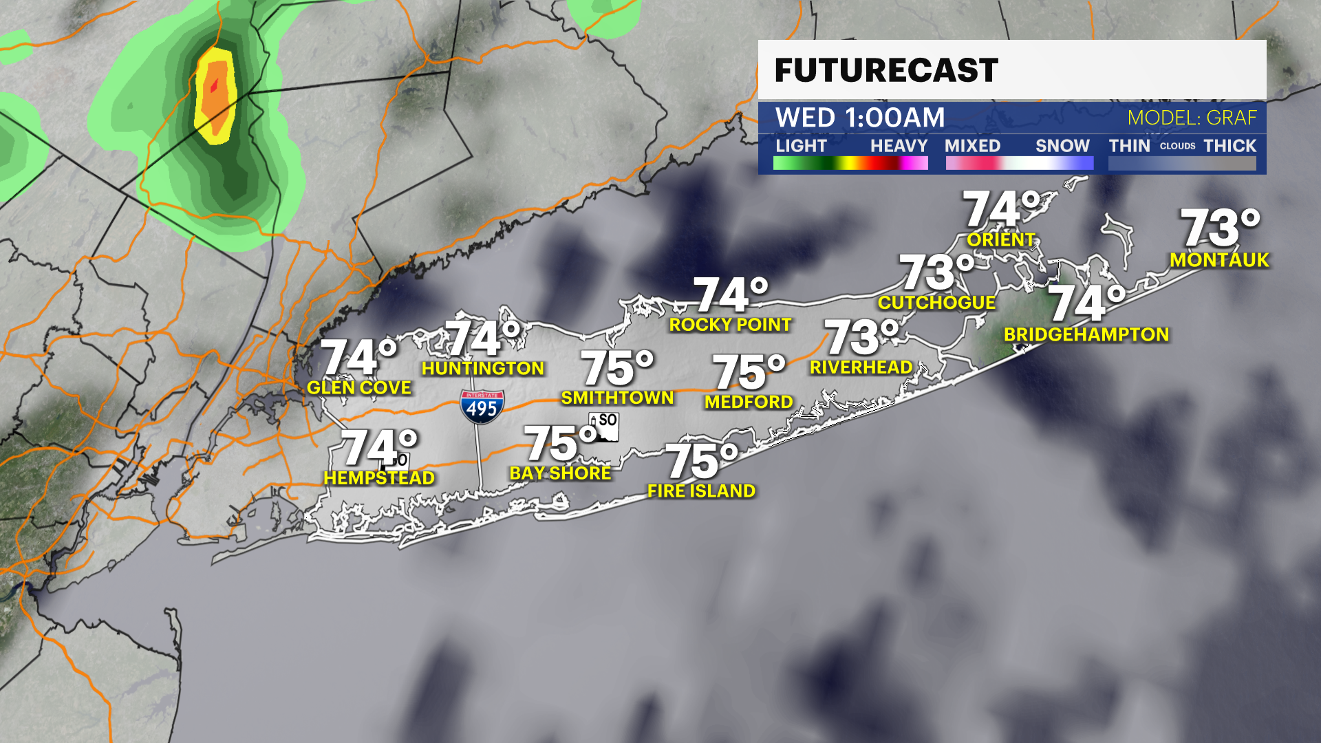 TONIGHT: Mild and muggy with passing clouds before mainly cloudy skies take hold overnight. Southeast winds 5-10 mph becoming calm overnight. Lows near 70°.