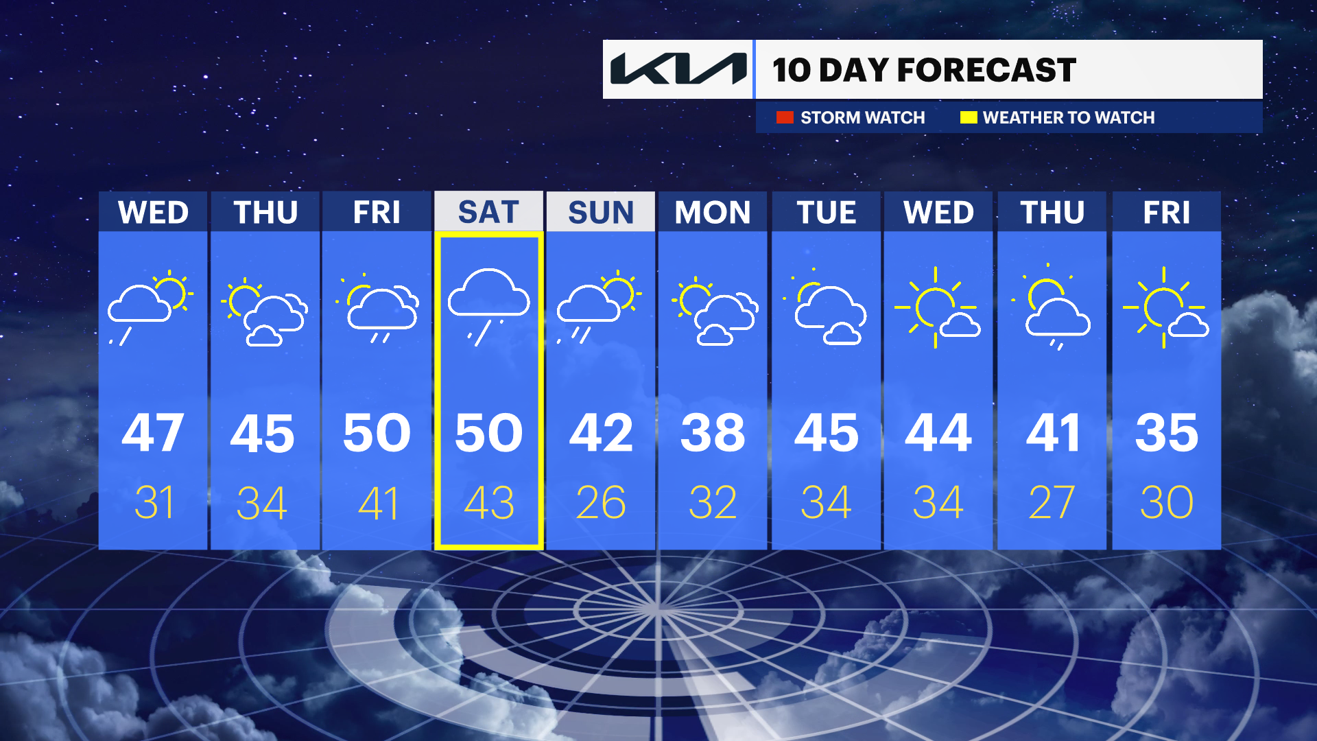 Highs will get into the low 50s Friday and Saturday, but plan on needing the rain jacket and umbrella Friday through early Sunday. Showers develop Friday afternoon, but the steadiest rain will be on Saturday into early Sunday morning. It will get a bit windy, too with gusts potentially between 20 and 40 mph.