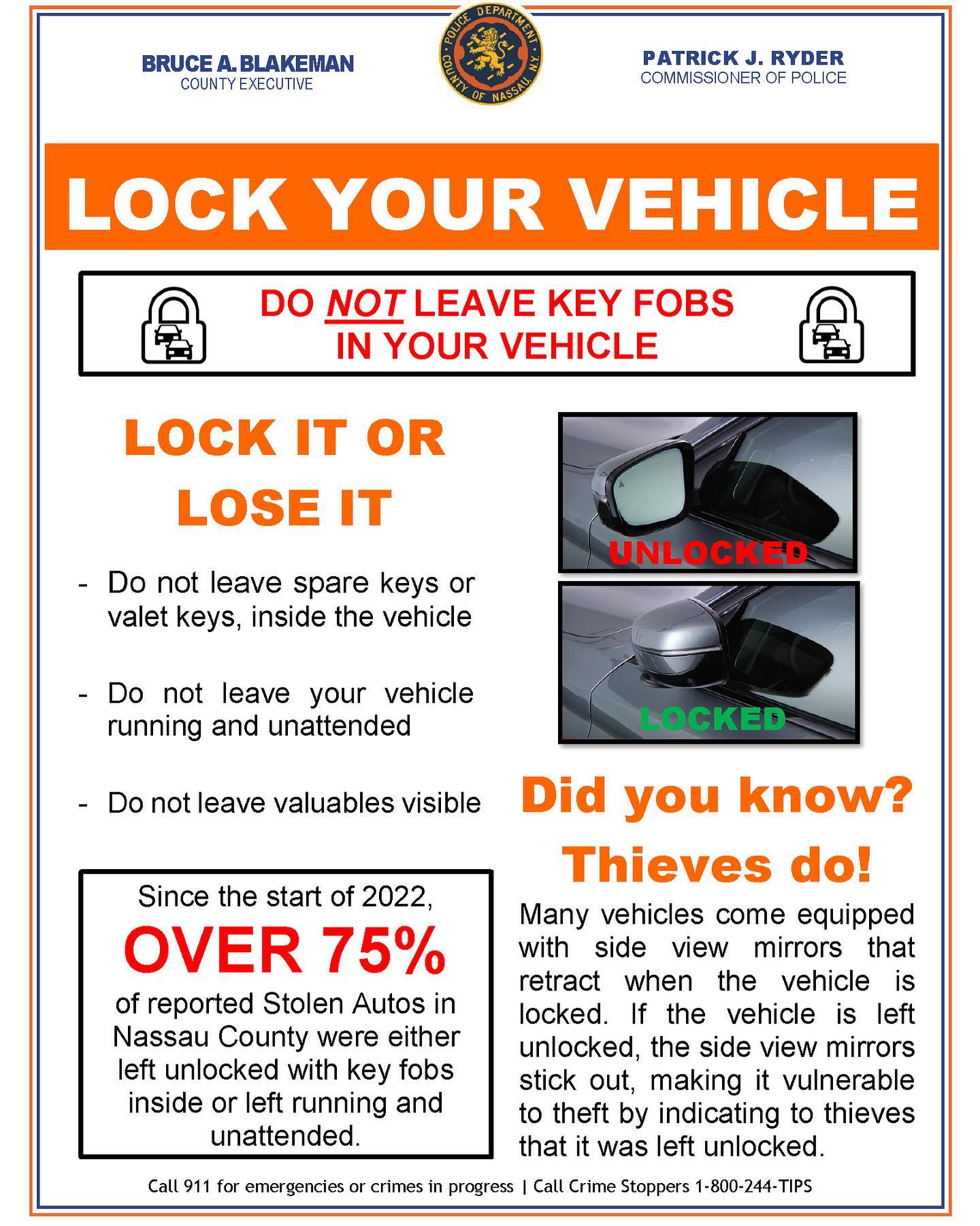 vehicles with keys and fobs left inside.