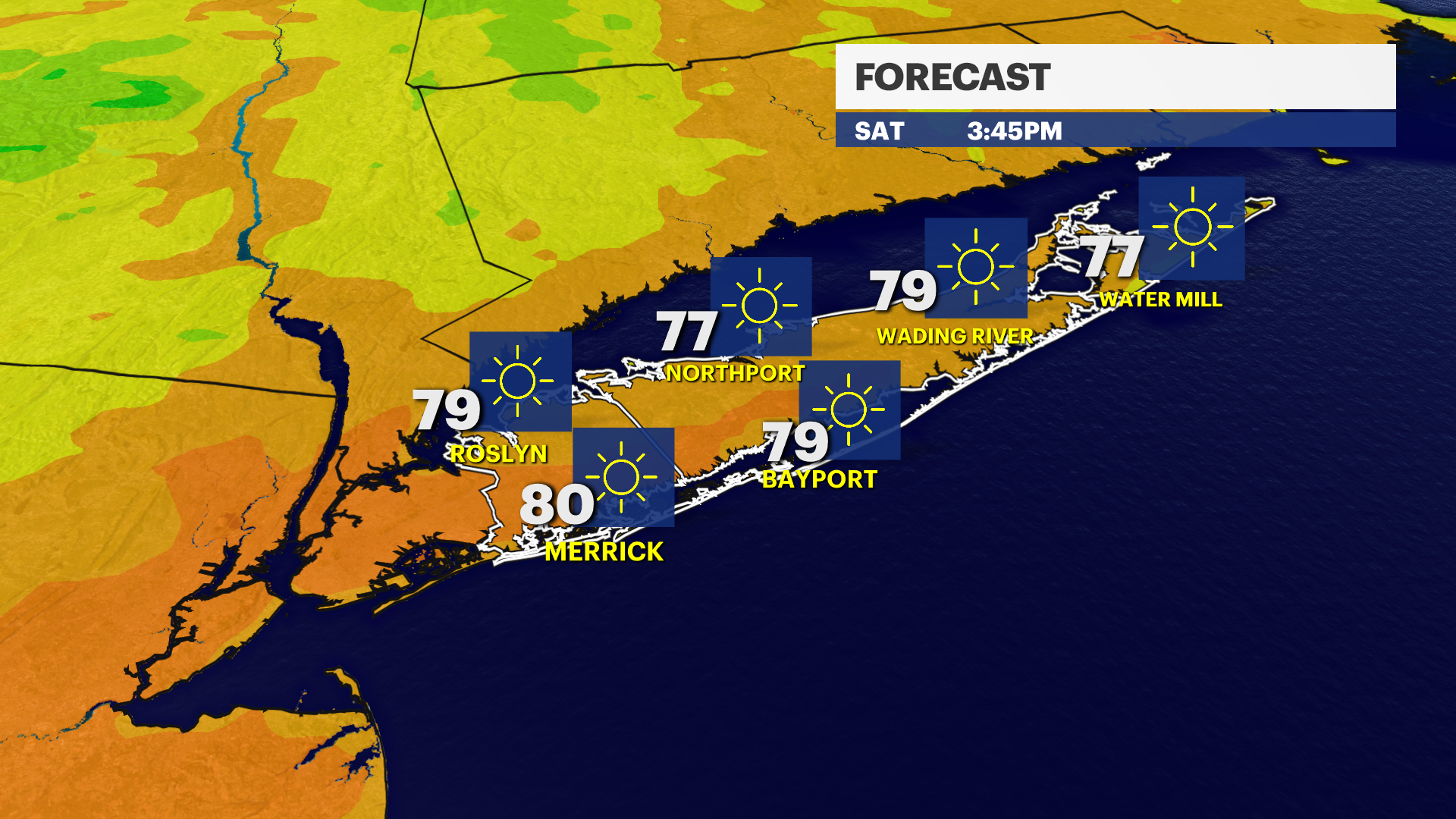 WHAT'S NEXT: Tracking showers late Monday through Wednesday next week. Hopefully parts of Long Island can get a steady rainfall to battle the drought conditions. Seasonable Temperatures next week.