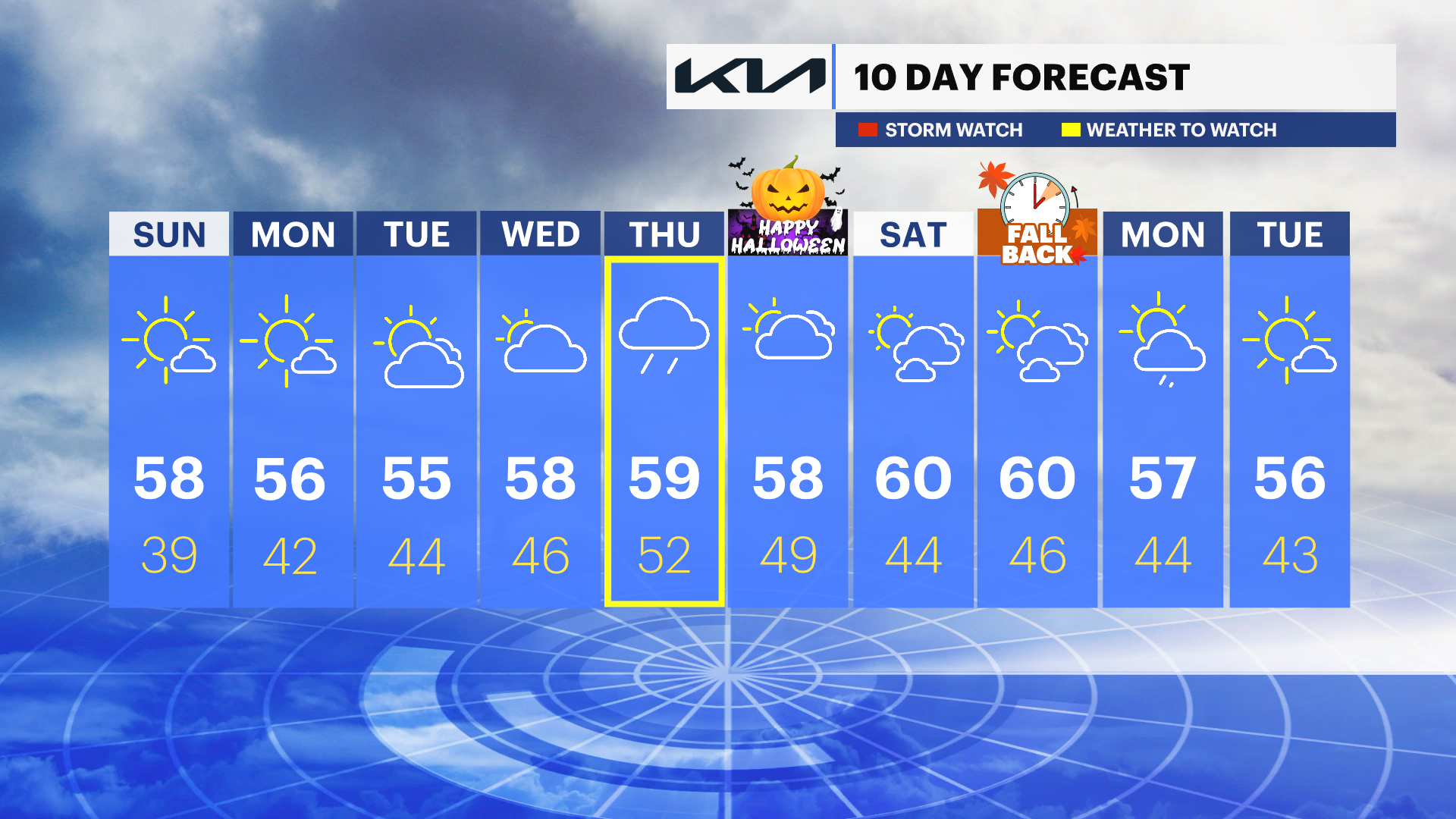 It's a dry start to the week, but rounds of rain is expected Thursday and possible for trick-or-treaters on Friday. Here's what we know so far.