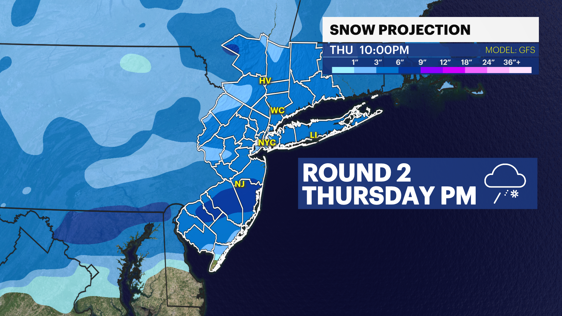 Model guidance shows another storm moving through the tri-state on Thursday afternoon into Friday morning and it does look more sizable with winter weather impacts.