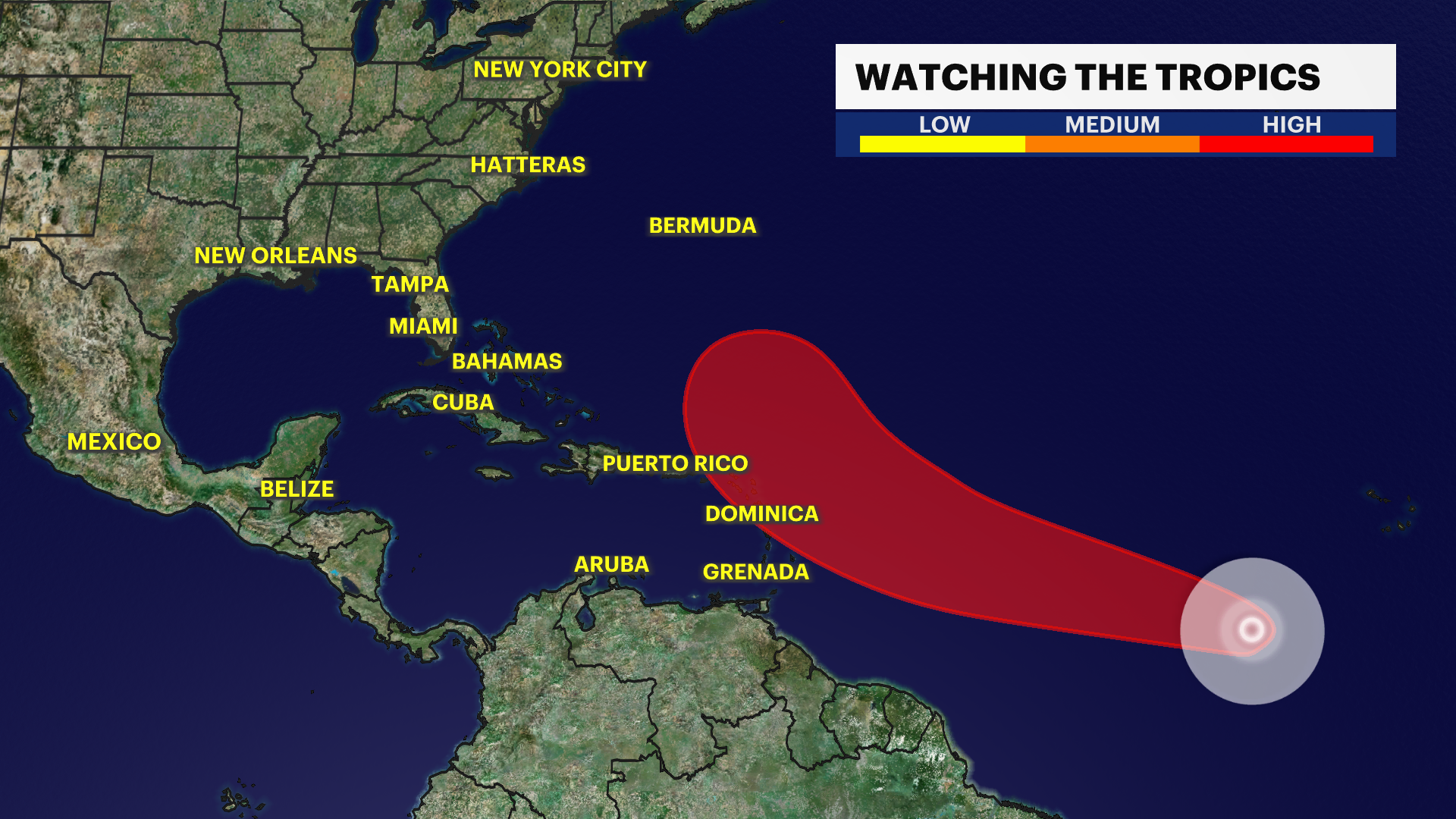 • TRACKING THE TROPICS: There's a high chance of a tropical wave to develop in the next 7 days. It is likely to become a tropical depression or storm by the end of this week near the Leeward Islands.