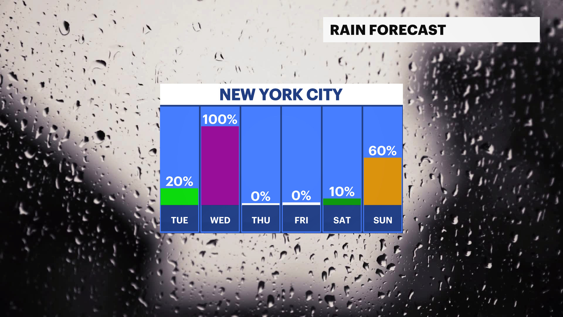 • A frontal system will bring some much-needed rain to the city late Tuesday into Wednesday. Some of the rain will be heavy at times throughout the day on Wednesday. Less than an inch of rainfall is possible through Wednesday afternoon. Stay tuned for updates!