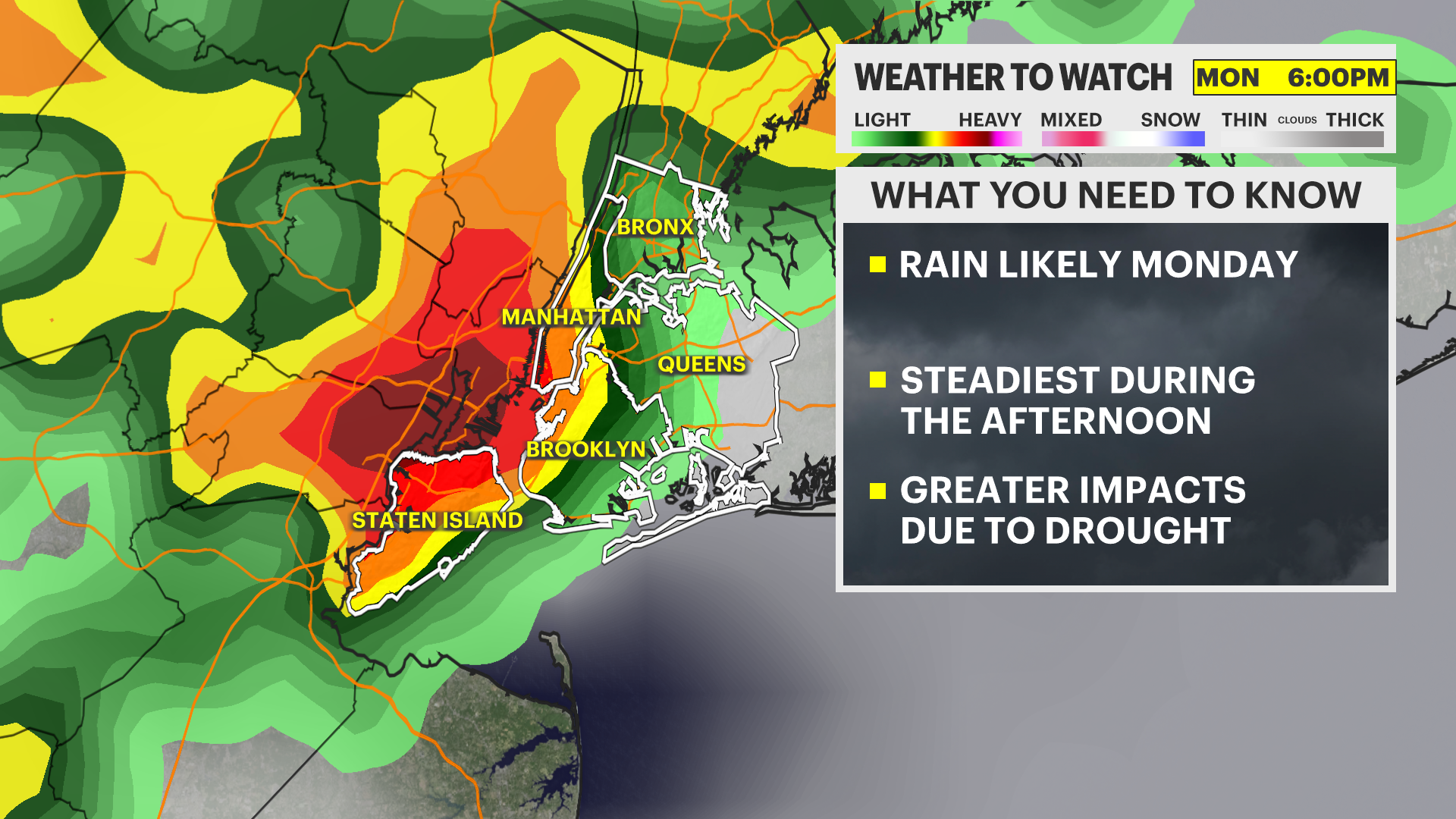 MONDAY - WEATHER TO WATCH: a few showers possible in the morning, a better