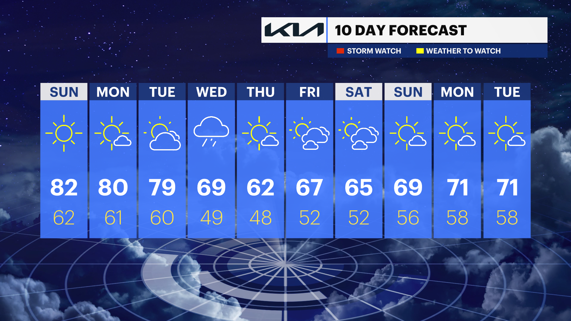 Another summer-like sunny day for Sunday, but News 12 is tracking rain and cooler weather for midweek.