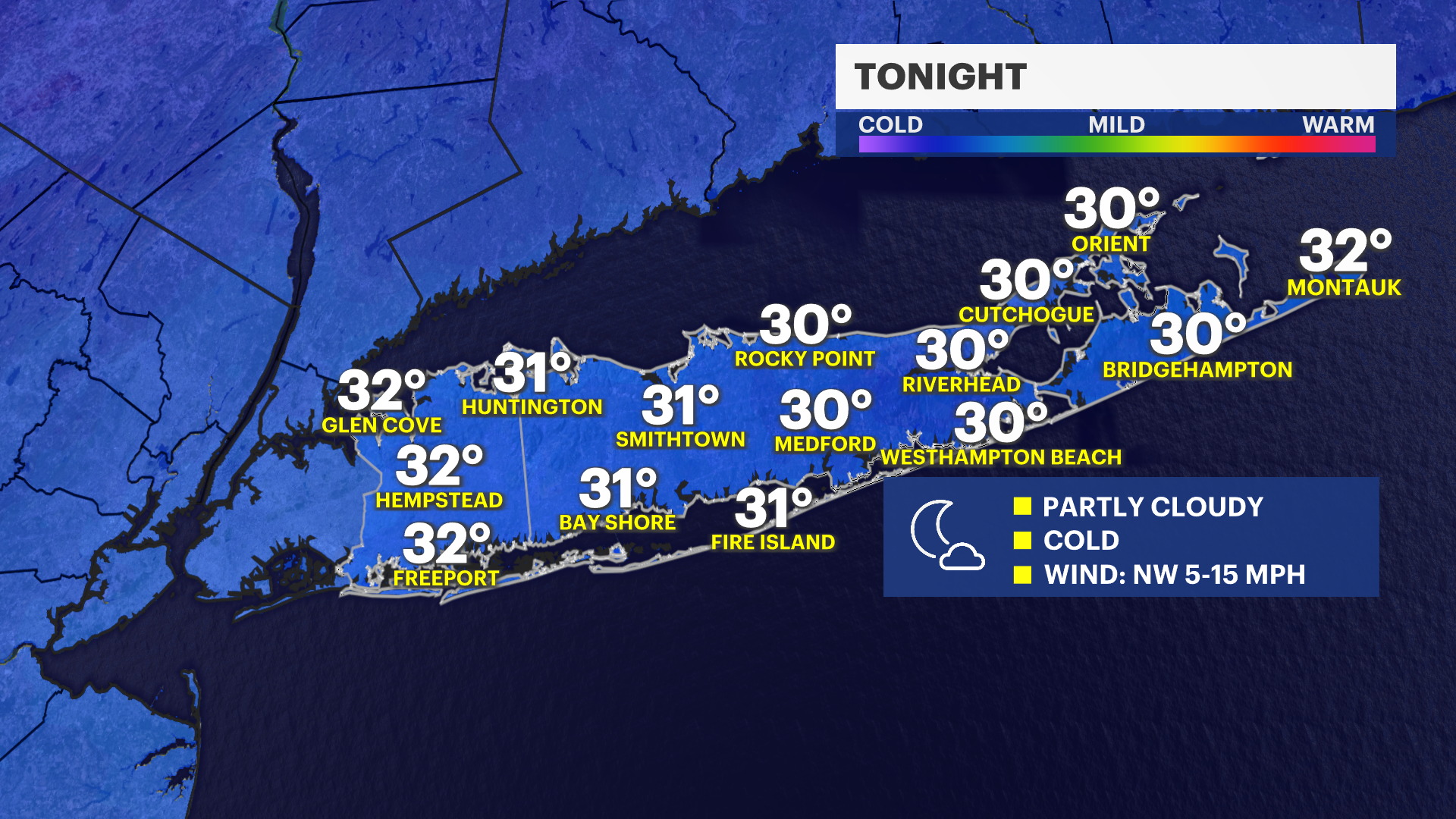 Tonight, skies turn partly cloudy and it will be noticeably colder. As temperatures fall into the upper 20s and lower 30s, be mindful of a few icy spots developing overnight, especially on untreated surfaces.